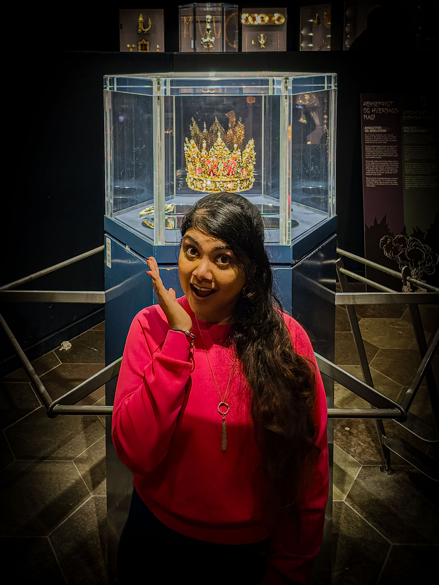 And the Treasury, seeing the Crown Jewels. As we enter through the vault’s thick steel door, Christian III’s state sword from 1551 is the first display we see. But the stars of the show are Christian IV’s crown from 1596, the Crown of the Absolute Monarchs used between 1671 and 1731, and the Queen’s crown, from 1648. Beautiful!!