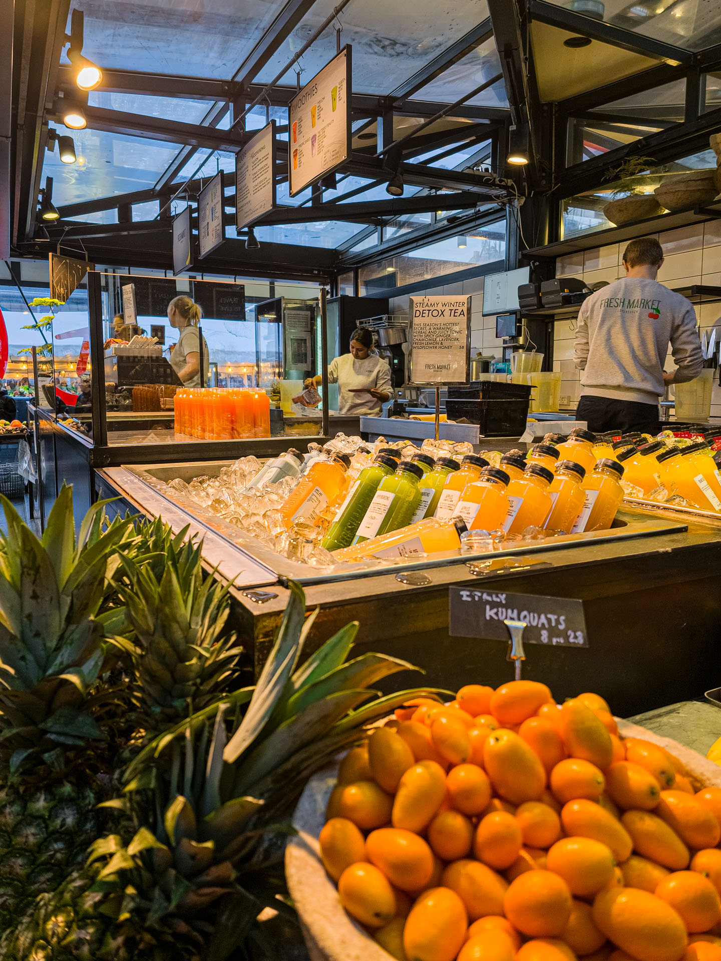 It’s a mix of fresh food market with fish mongers, butchers, and fruit and veg on sale. And a food hall, with ready-to-eat food being served and a few bars to be able to grab a drink.