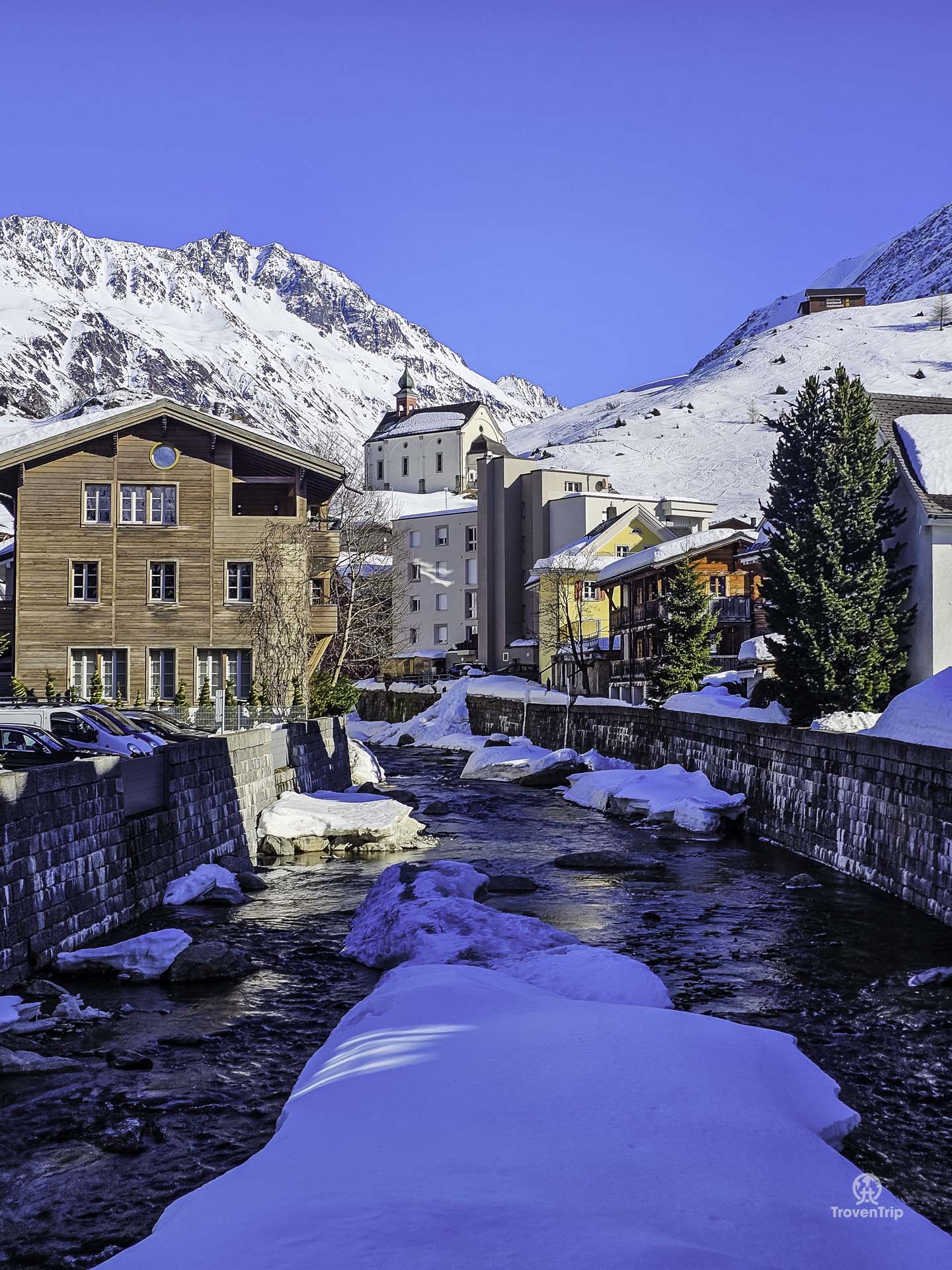 We leave the Glacier Express in Andermatt and have an hour before our next train. We wander around the ski town, seeing St. Peter and Paul’s Church and the beautiful river running through the centre.