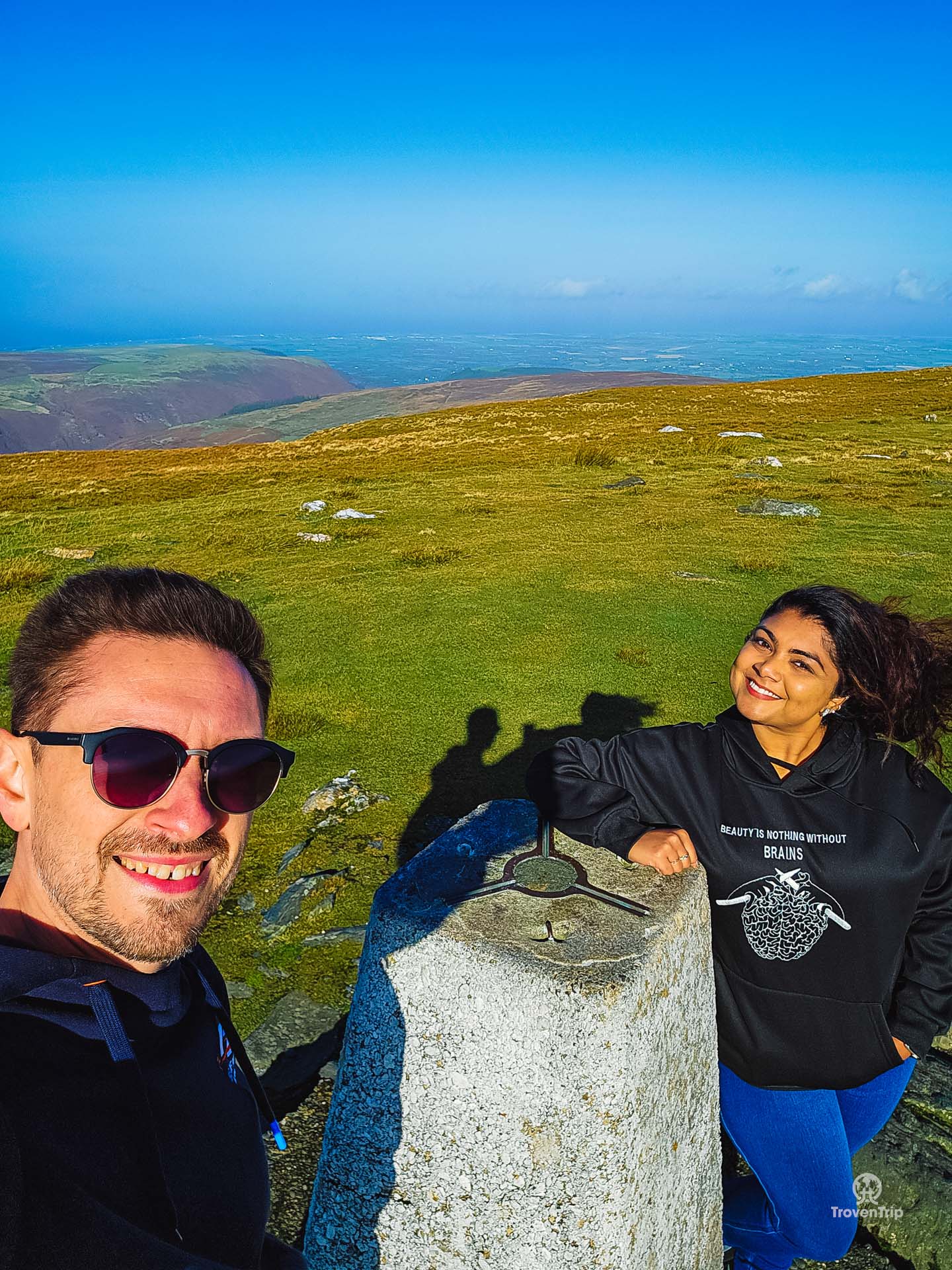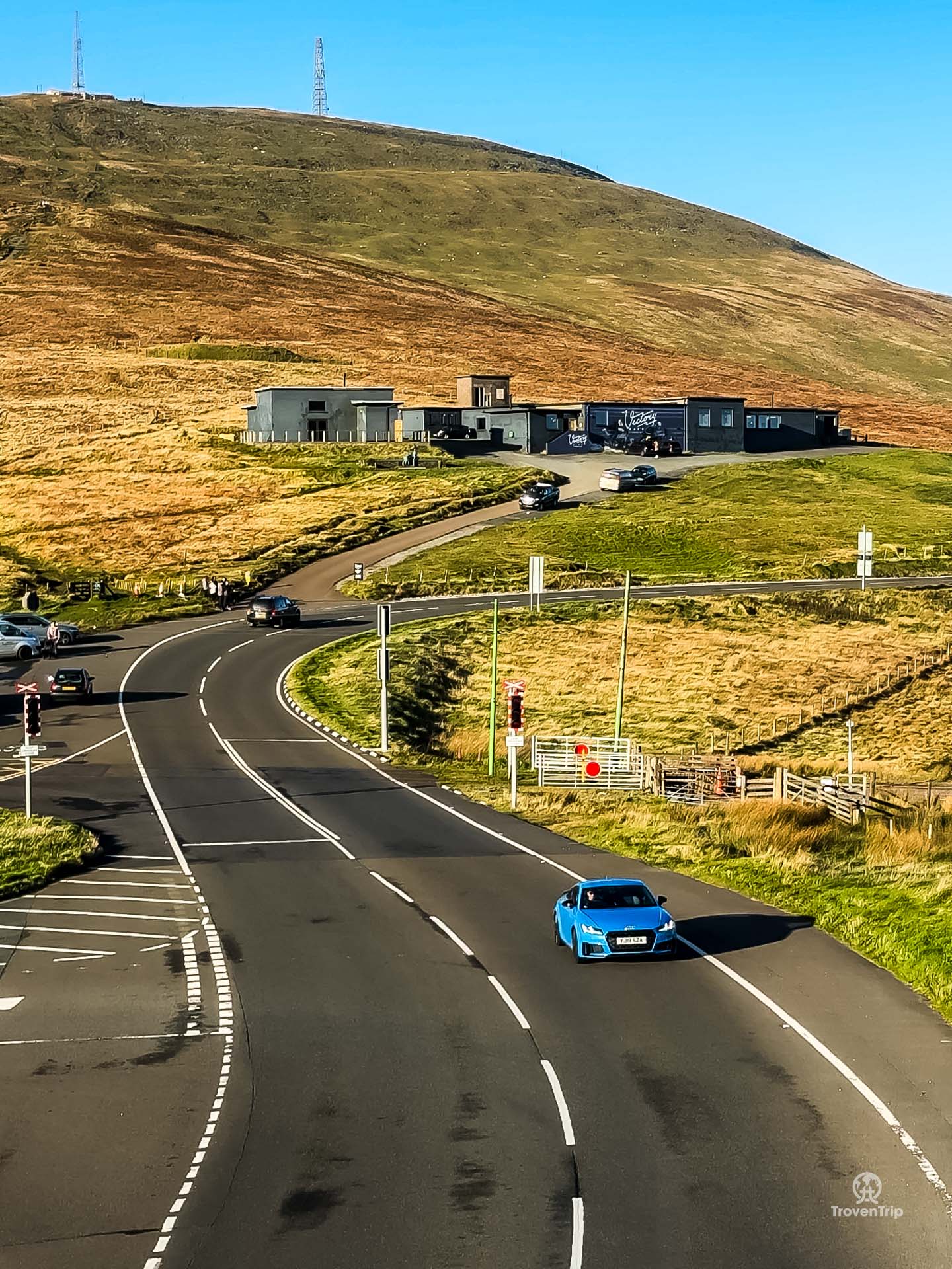 At the top there’s a café to get some food and a coffee, but first we explore the peak and head up to the Trig point to see the views… on a clear day it’s said you “can see seven Kingdoms from its top: The Isle of Man, England, Ireland, Scotland, Wales, and the Kingdoms of Neptune and Heaven!”
