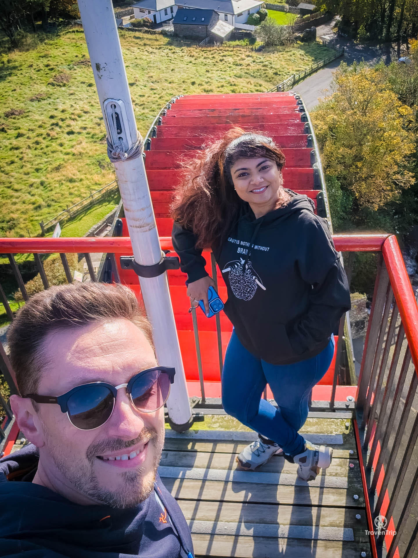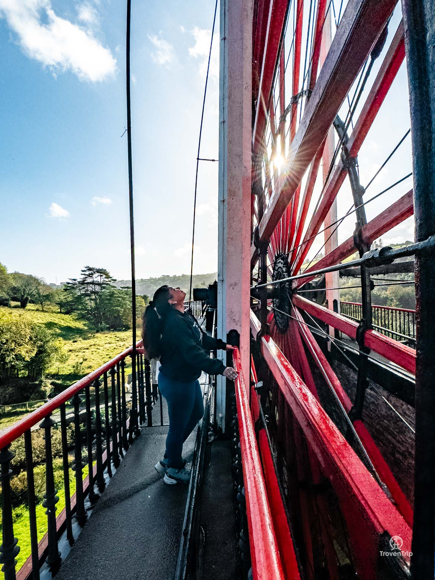 We climb to the top, tackling all 95 steps, and it gives us a unique perspective seeing the moving wheel so close up, even getting wet by the spray of it! And the views from the top are great too!