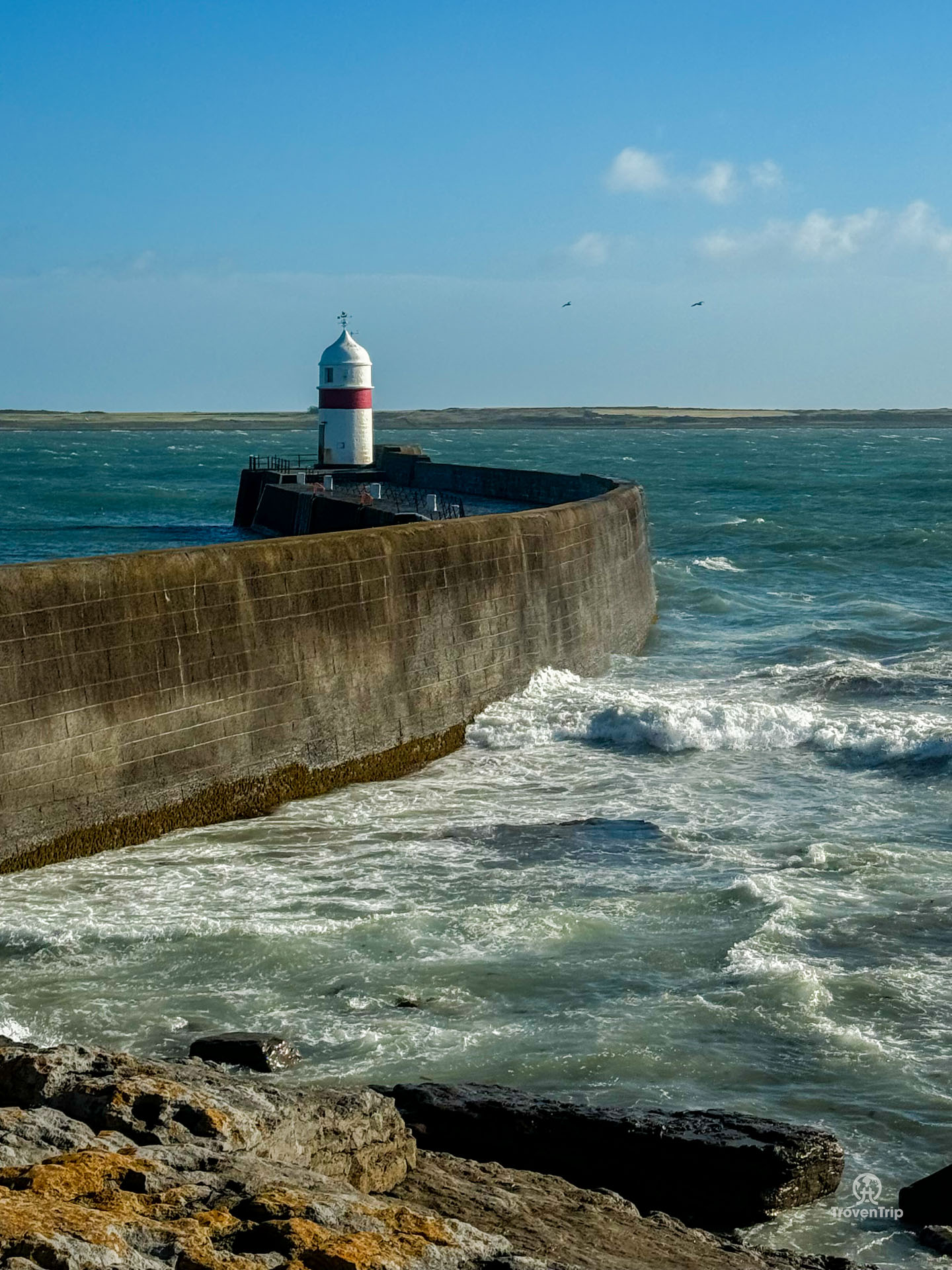 We start day 2 in Ramsey with a refreshing walk along the seafront to see the Queen’s Pier and Ramsey Lighthouse. Overnight there’s been a huge storm, and although the rain has cleared, the winds are still super strong, so the sea is rough and the waves are splashing up onto us on the promenade.