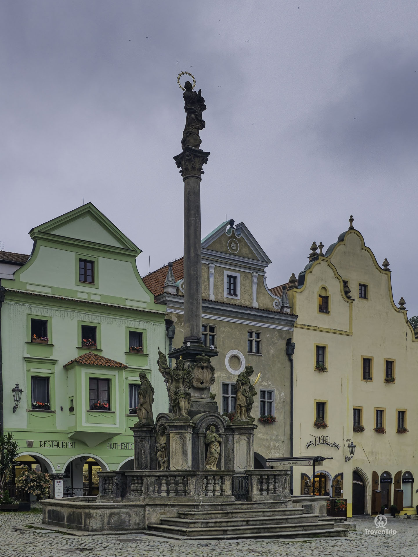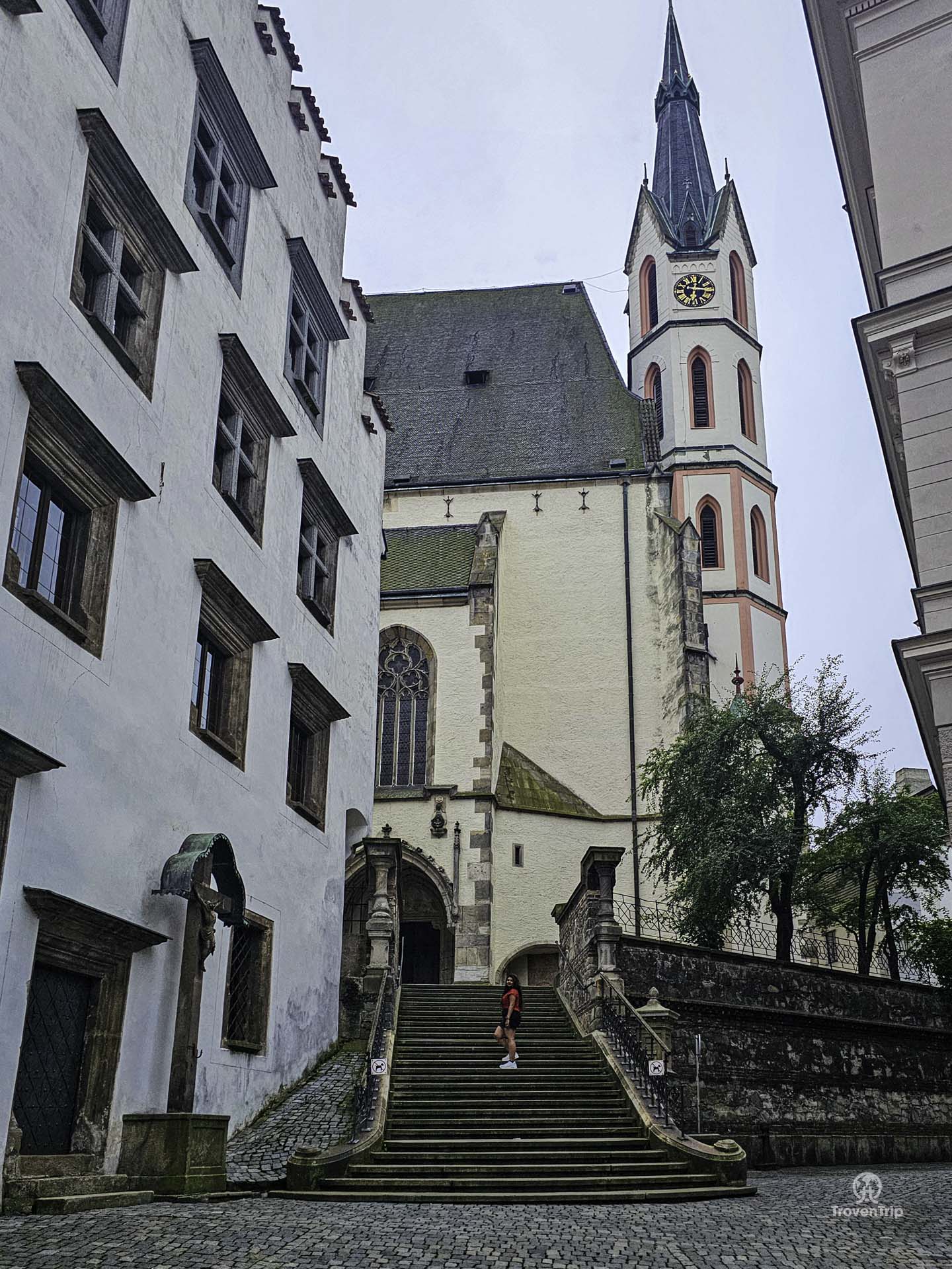 The town square is the centre, surrounded by pretty buildings with the Fountain and Plague Column in the middle. And the Church of St. Vitus is worth a visit.