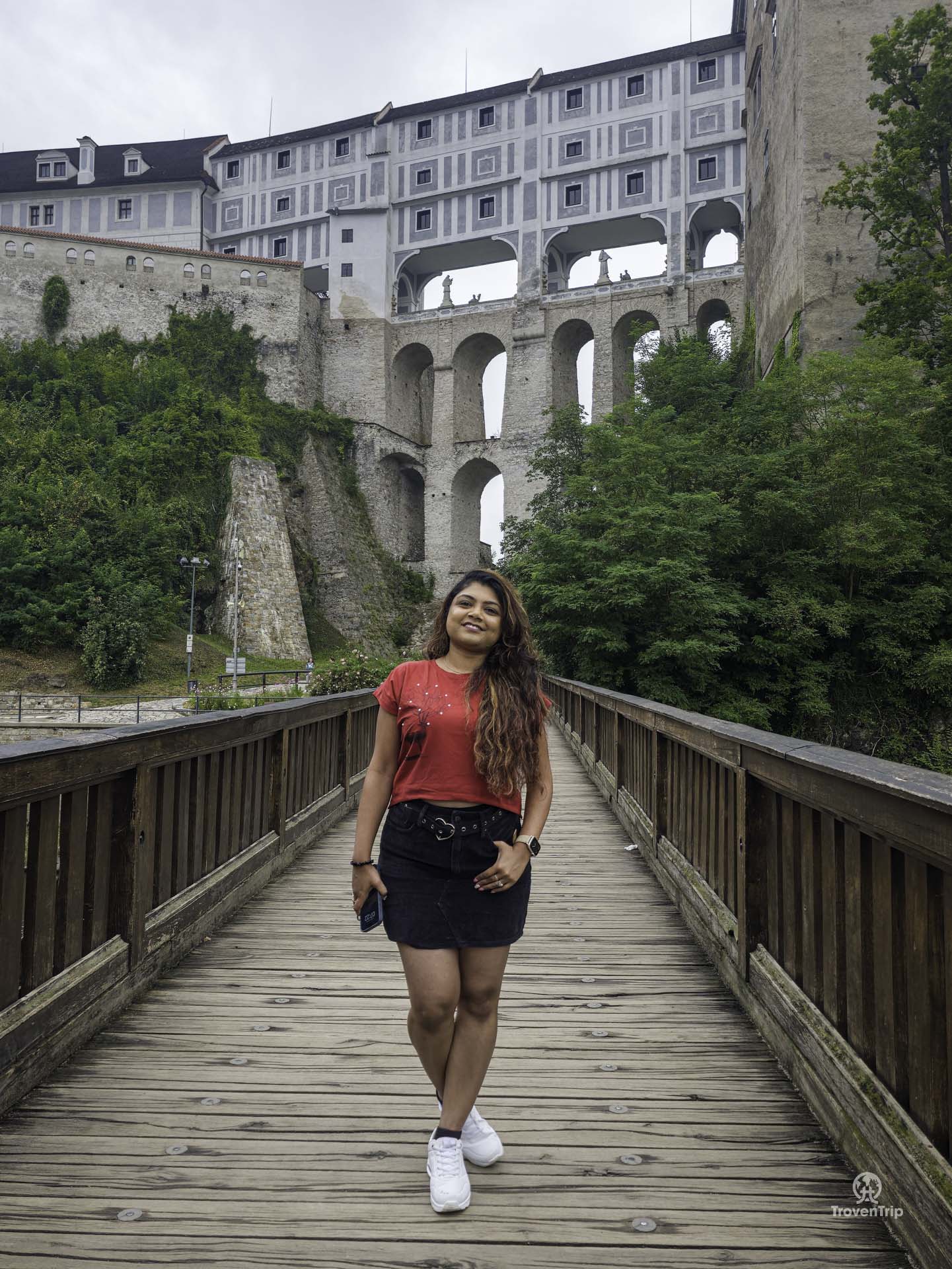 If you park in P1 parking (full details at the end of the blog) like we did then the first thing you will see of Cesky Krumlov is Cloak Bridge.