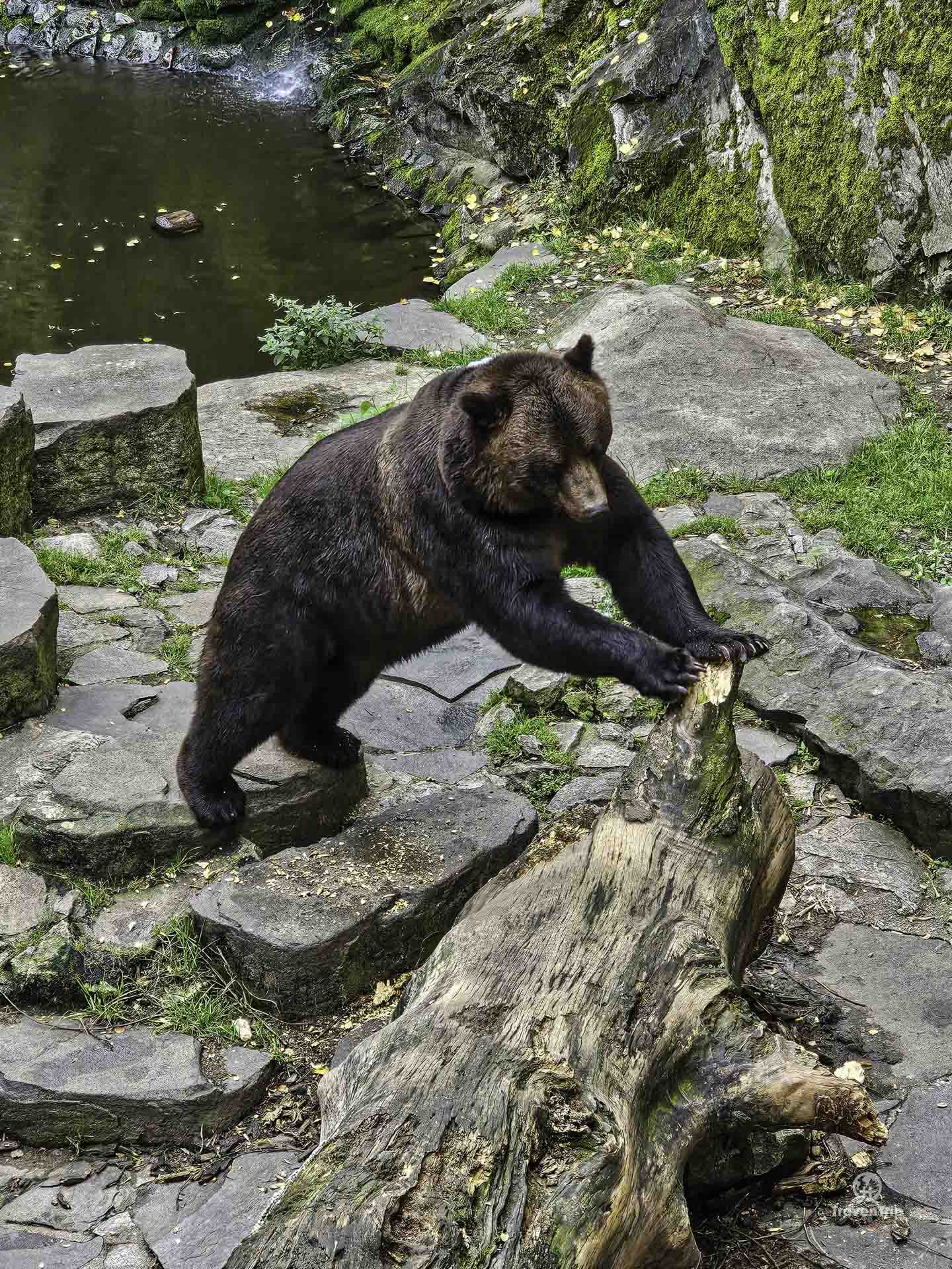 And somehow we almost miss them… but just as we’re about to head back for the start of the tour we see some people standing on some wooden benches looking over a metal fence. And down below are the famous Cesky Krumlov bears!