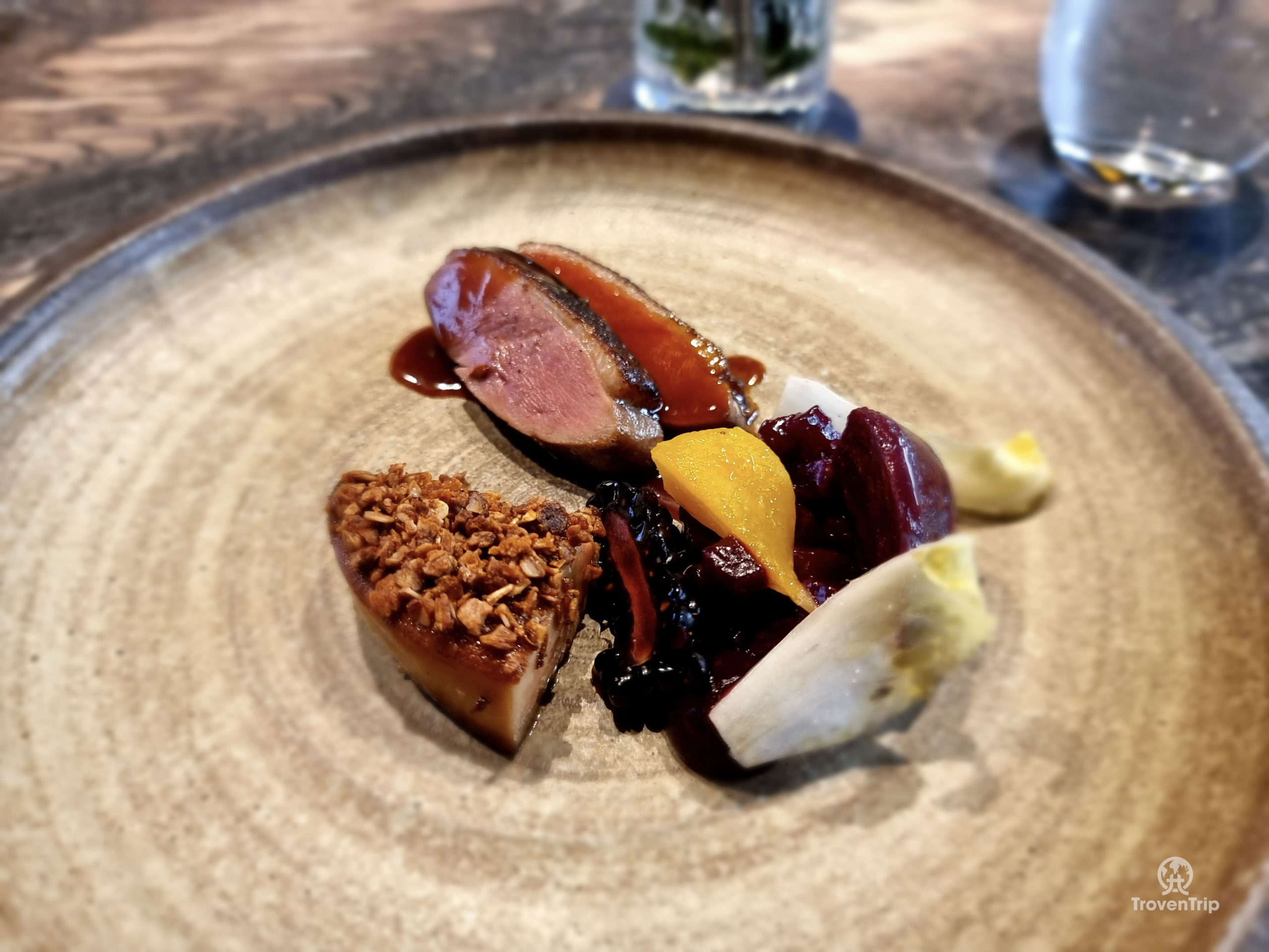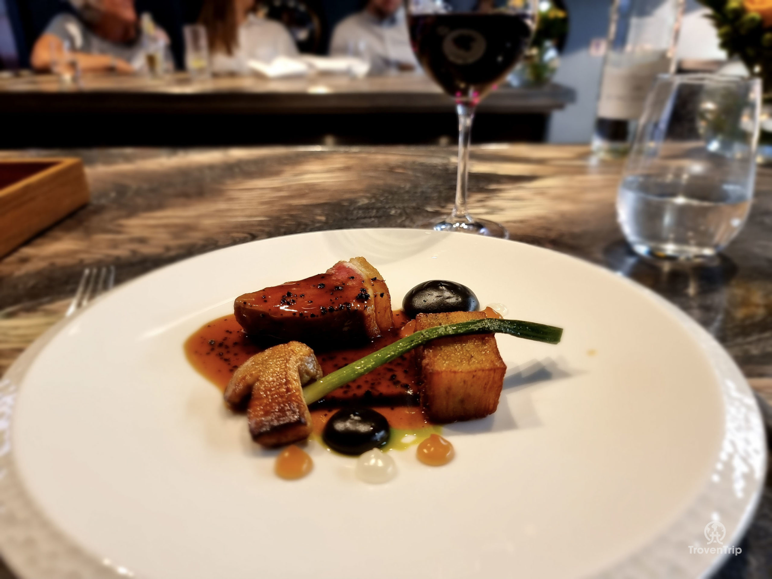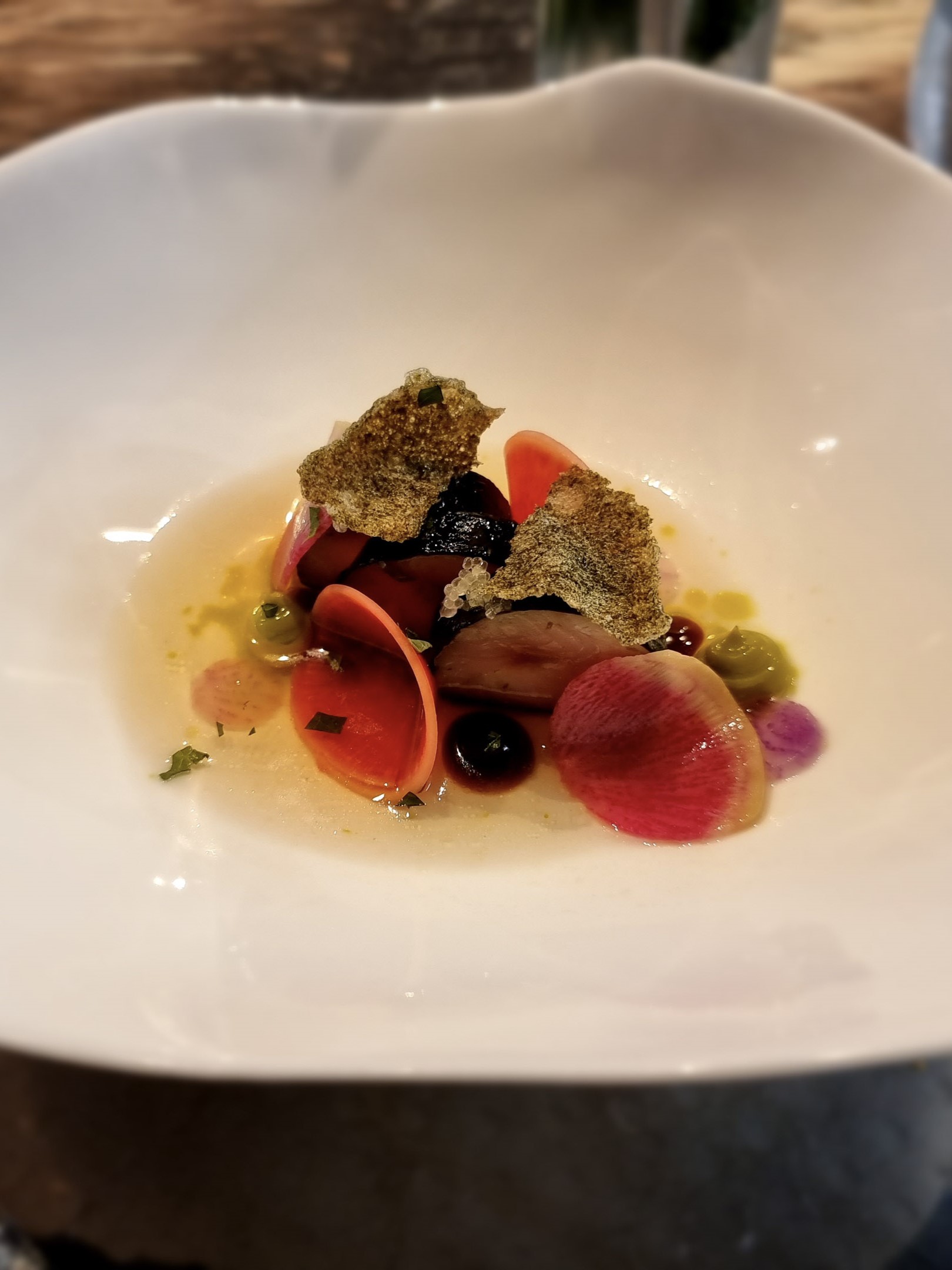 Paul enjoying a non-alcoholic mocktails! We discuss menu options with the very helpful waiter and opt for one 7-course tasting menu and one 3-course à la carte… we figure that way we’ll be able to try as many of the different dishes as possible! As the waiter points out, the drawback this way is the dishes won’t be timed with each other, but as we’re planning to share everything anyway, it works out perfectly!
