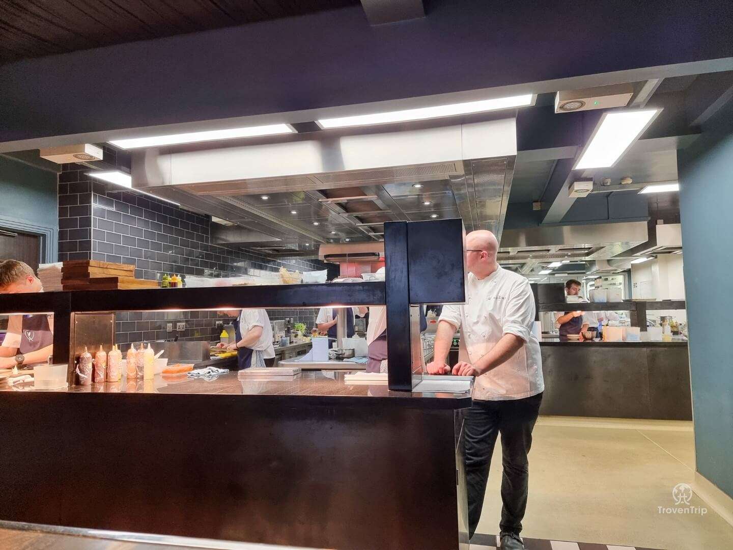 Chef's experience table As we peruse the menu we’re served with our drinks… a gin cocktail and a coconut mojito mocktail (Paul being the designated driver for the day!). They’re both really nice, and Paul almost asks the waiter if his is definitely non-alcoholic as it tastes so good!