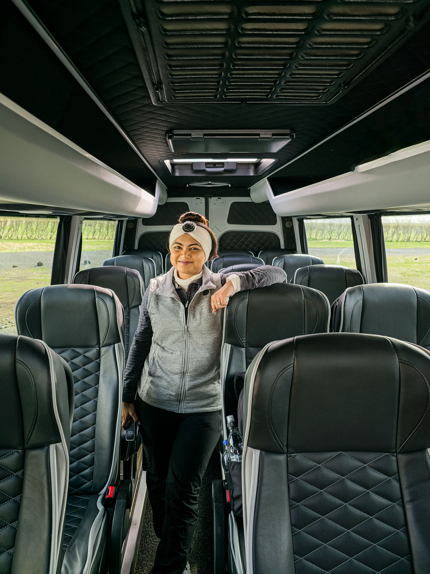 Our comfortable coach We got soaked leaving a remarkable imprint… Skógafoss Waterfall