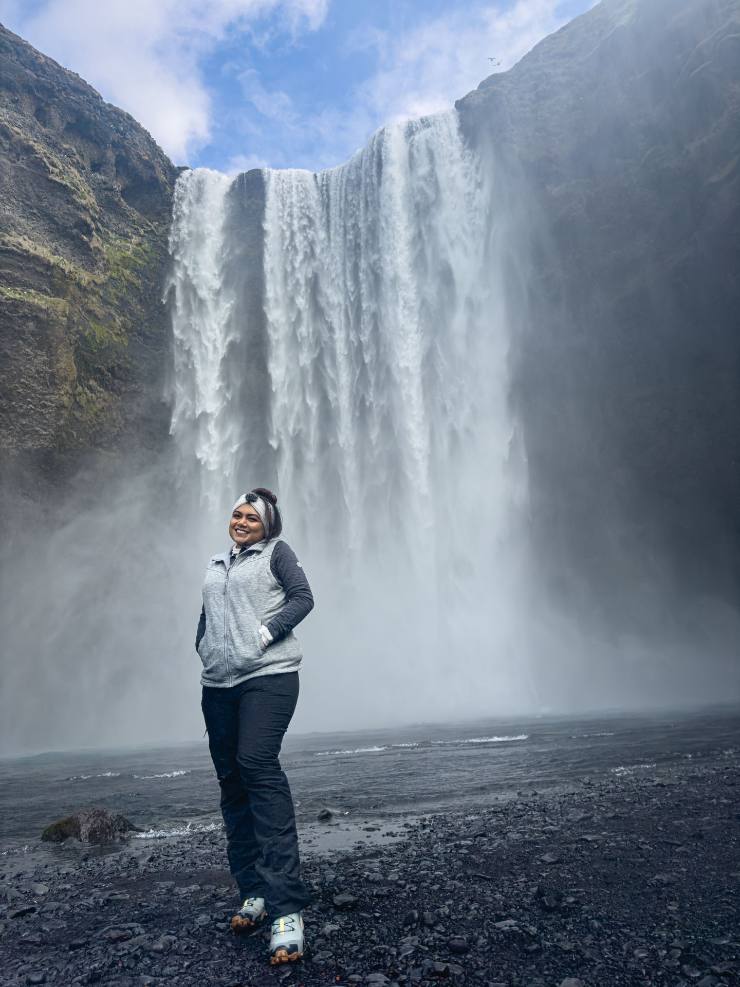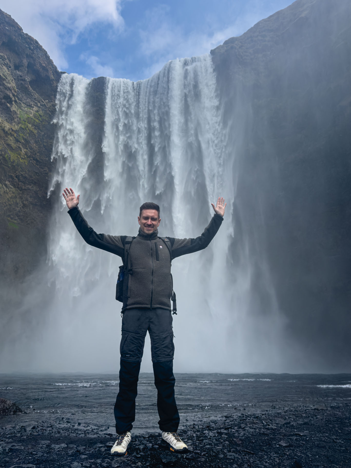 Our first stop of the day is at Skógafoss Waterfall, and it doesn’t get more spectacular than this!