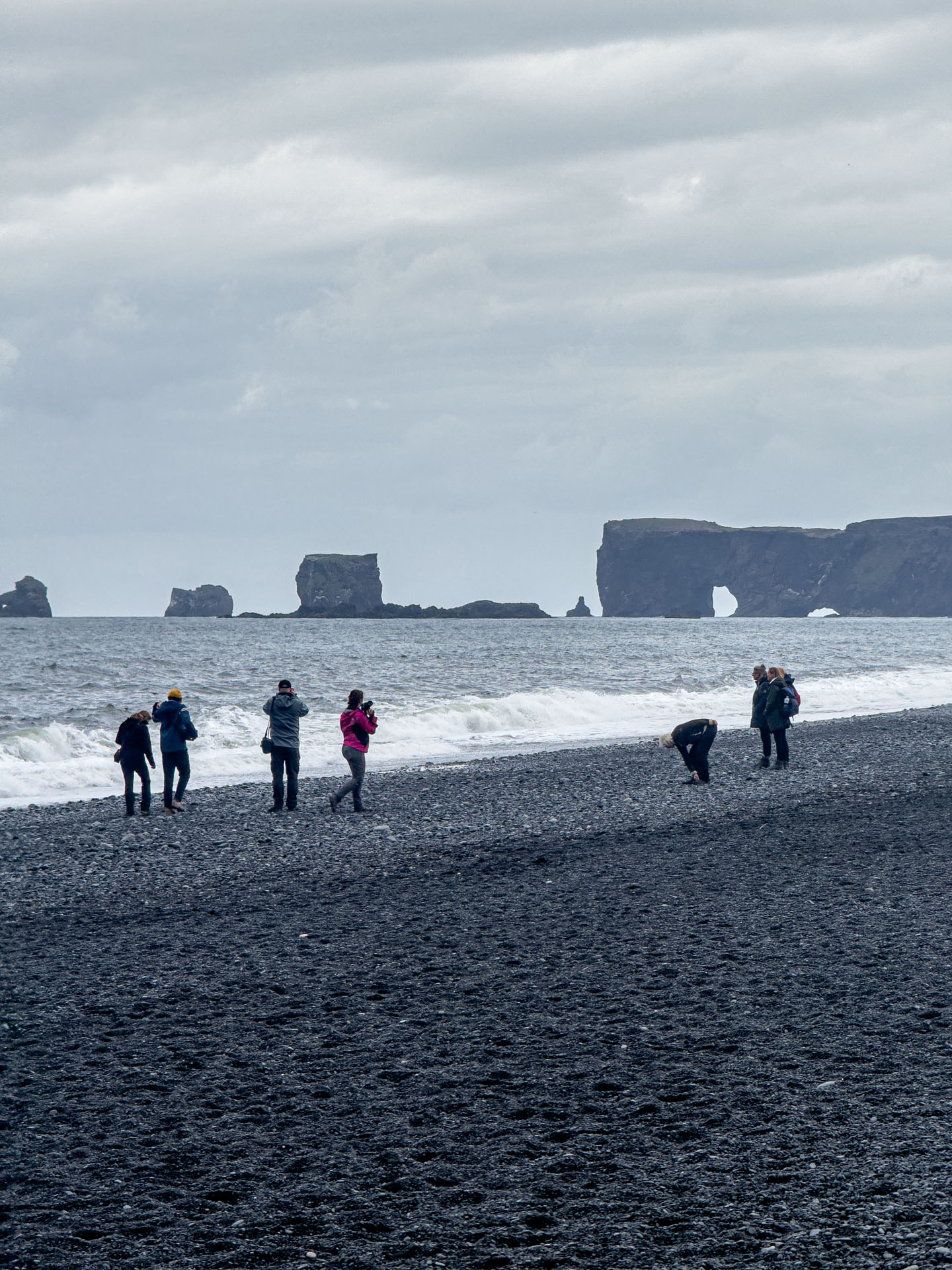 Further out to sea are the Reynisdrangar basalt sea stacks, which legend says were trolls who got stuck while trying to pull ships onto the shore. They remind us of something we would have seen yesterday during our visit to the Icelandic Phallological Museum in Reykjavik though!