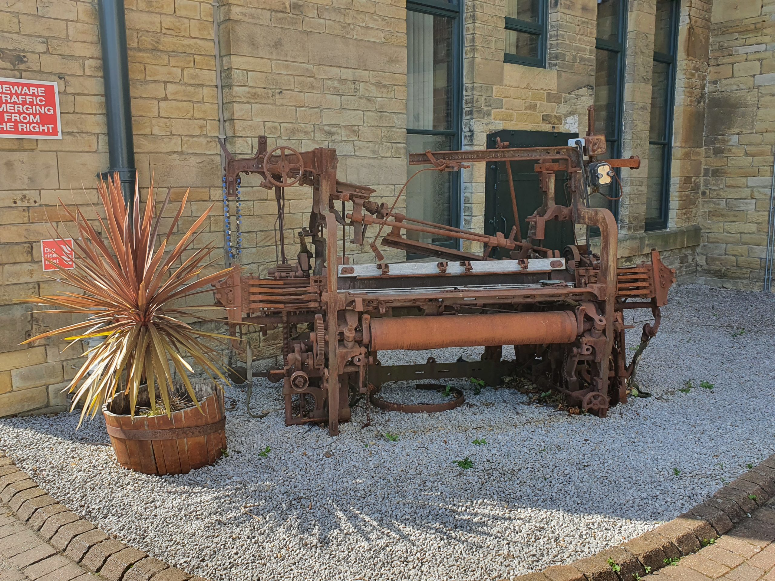 Turns out though that I must have taken a wrong turning, as although I seem to be inside the grounds of an old mill, it’s not Salts Mill as this is a residential complex. It’s very nicely done though… the modern apartments have been designed to compliment the old mill buildings well, and an old loom has been kept as a reminder of the site’s past.