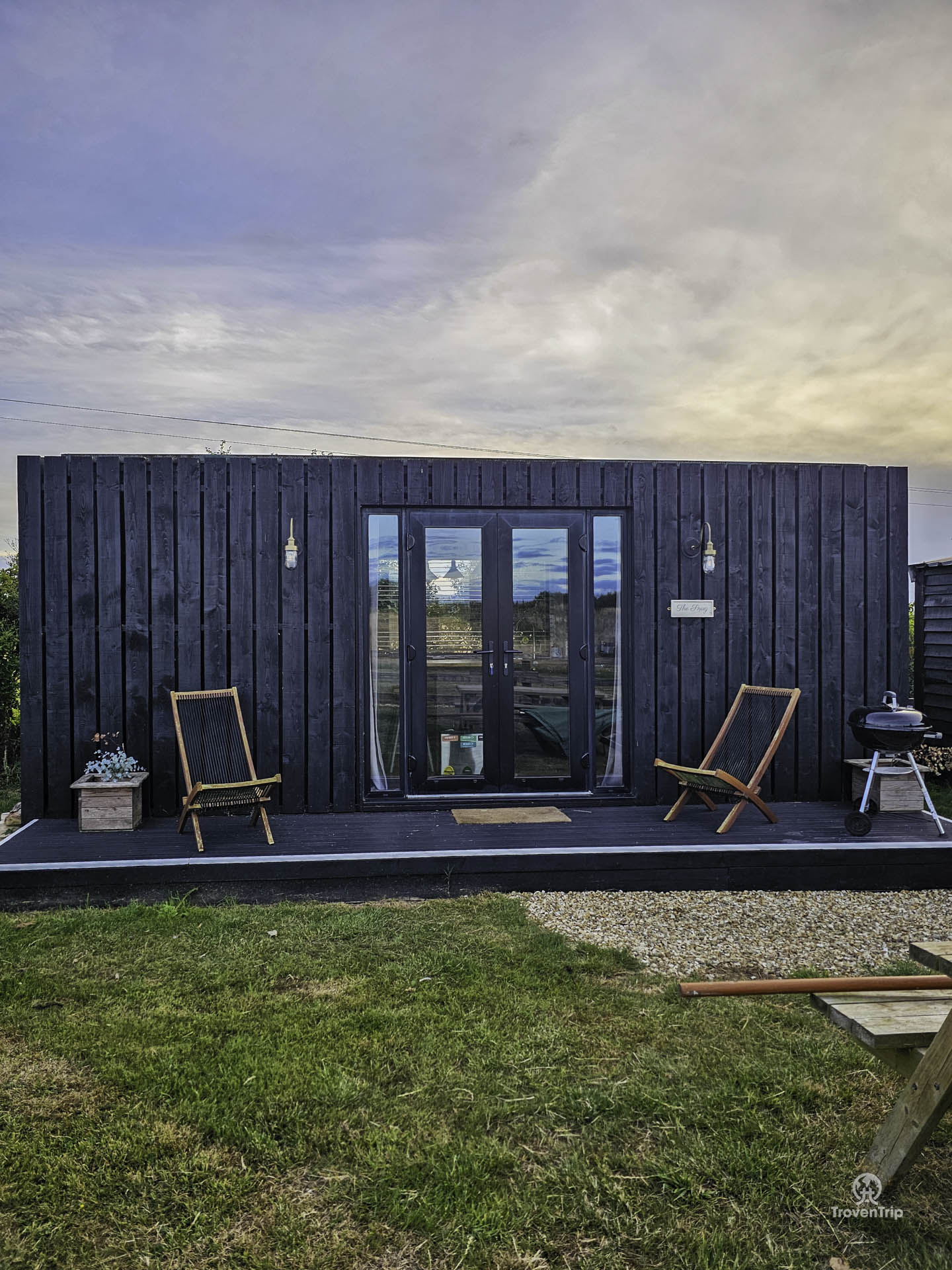 We stay in a cosy glamping shipping container called The Snug, part of Tapnell Farm. It has everything we need... with gorgeous countryside views and a peaceful setting.