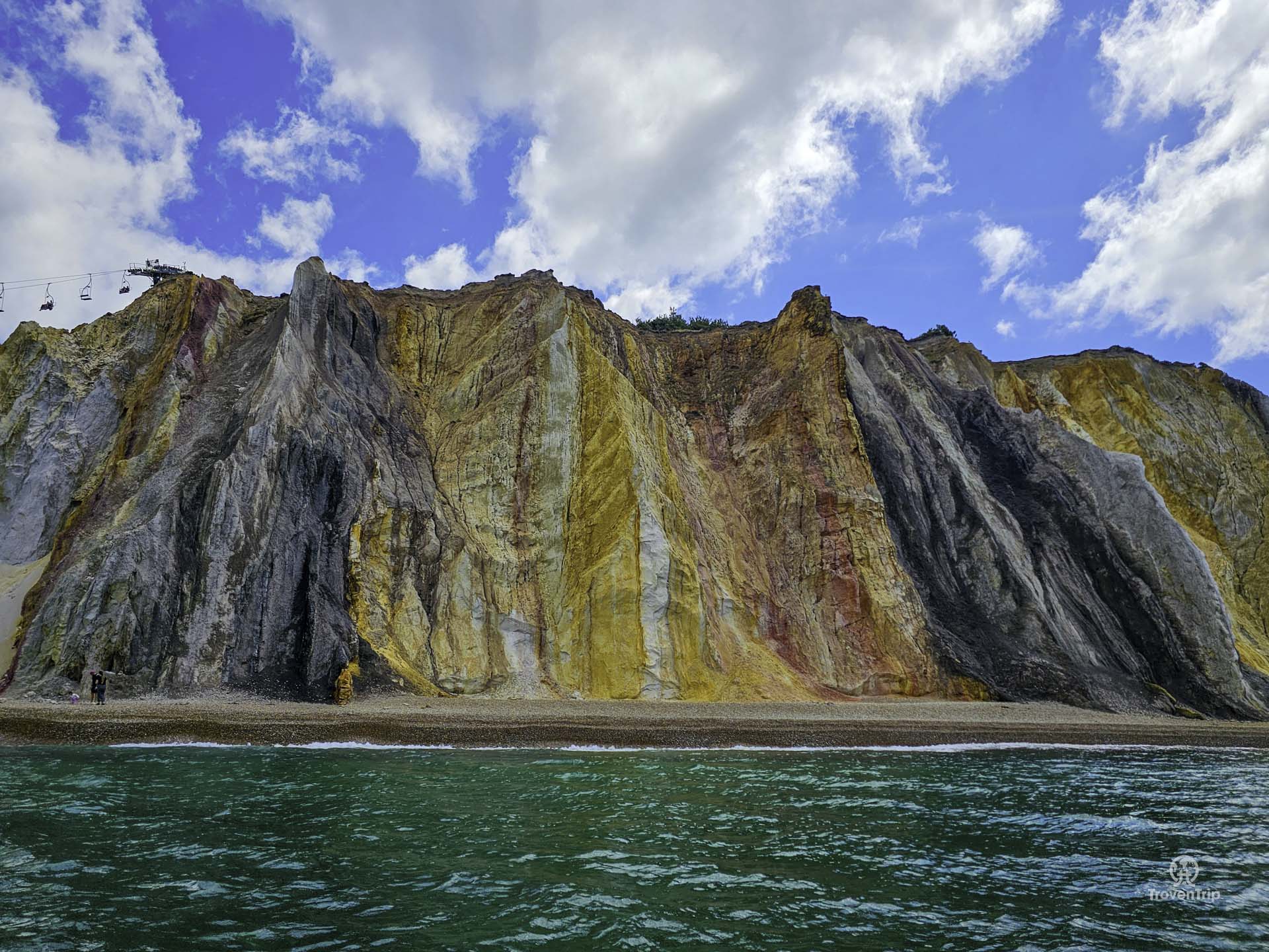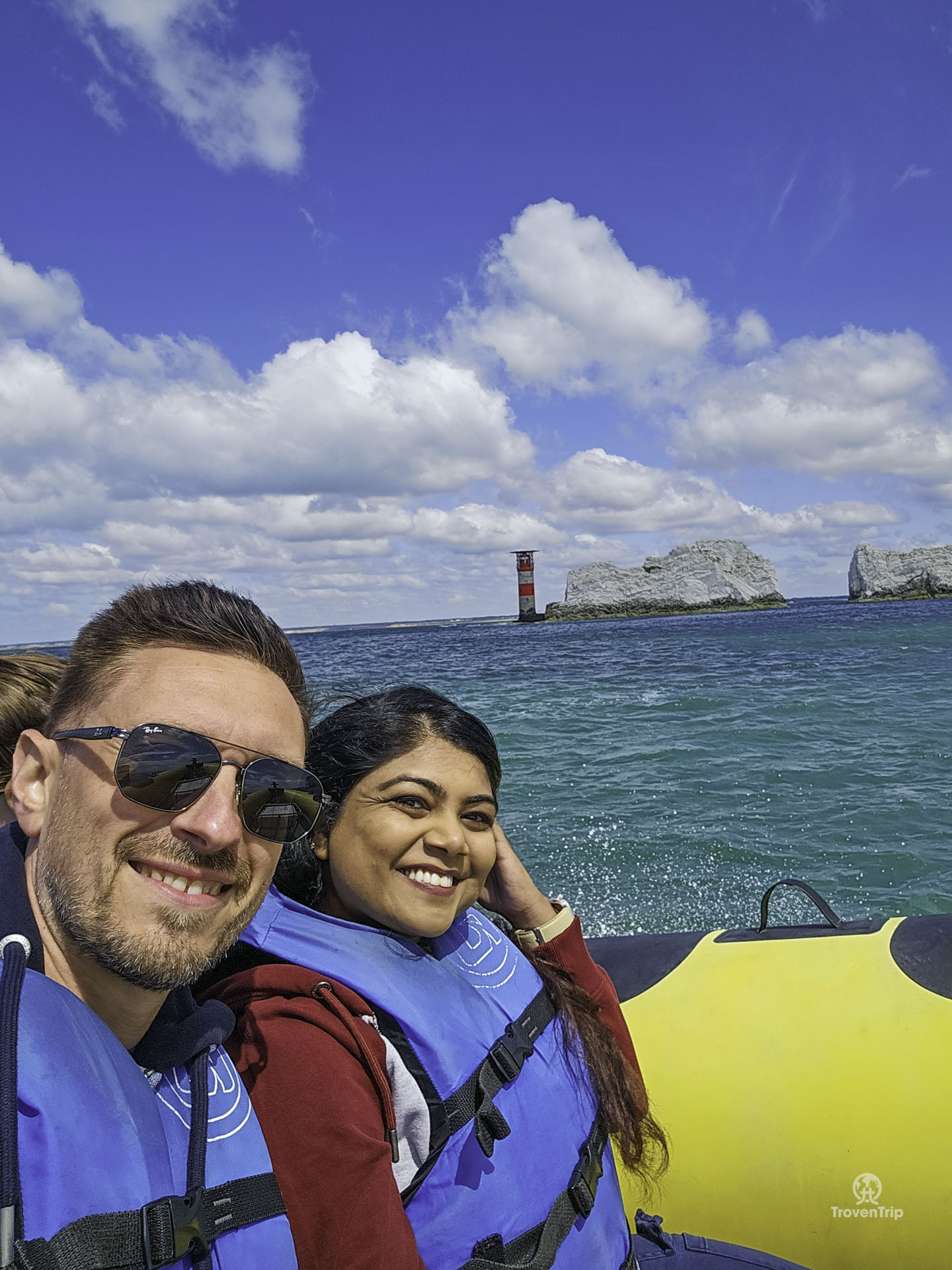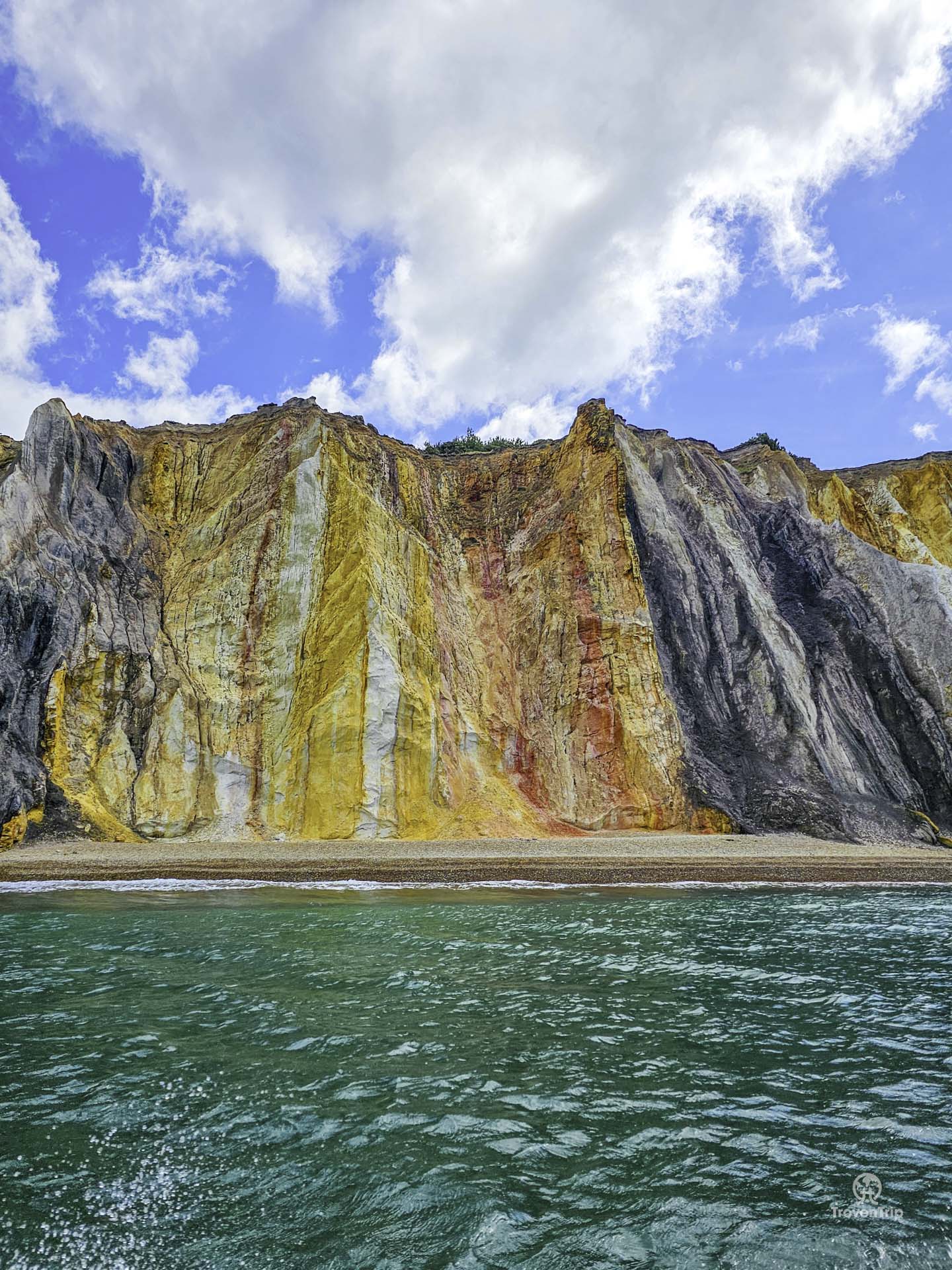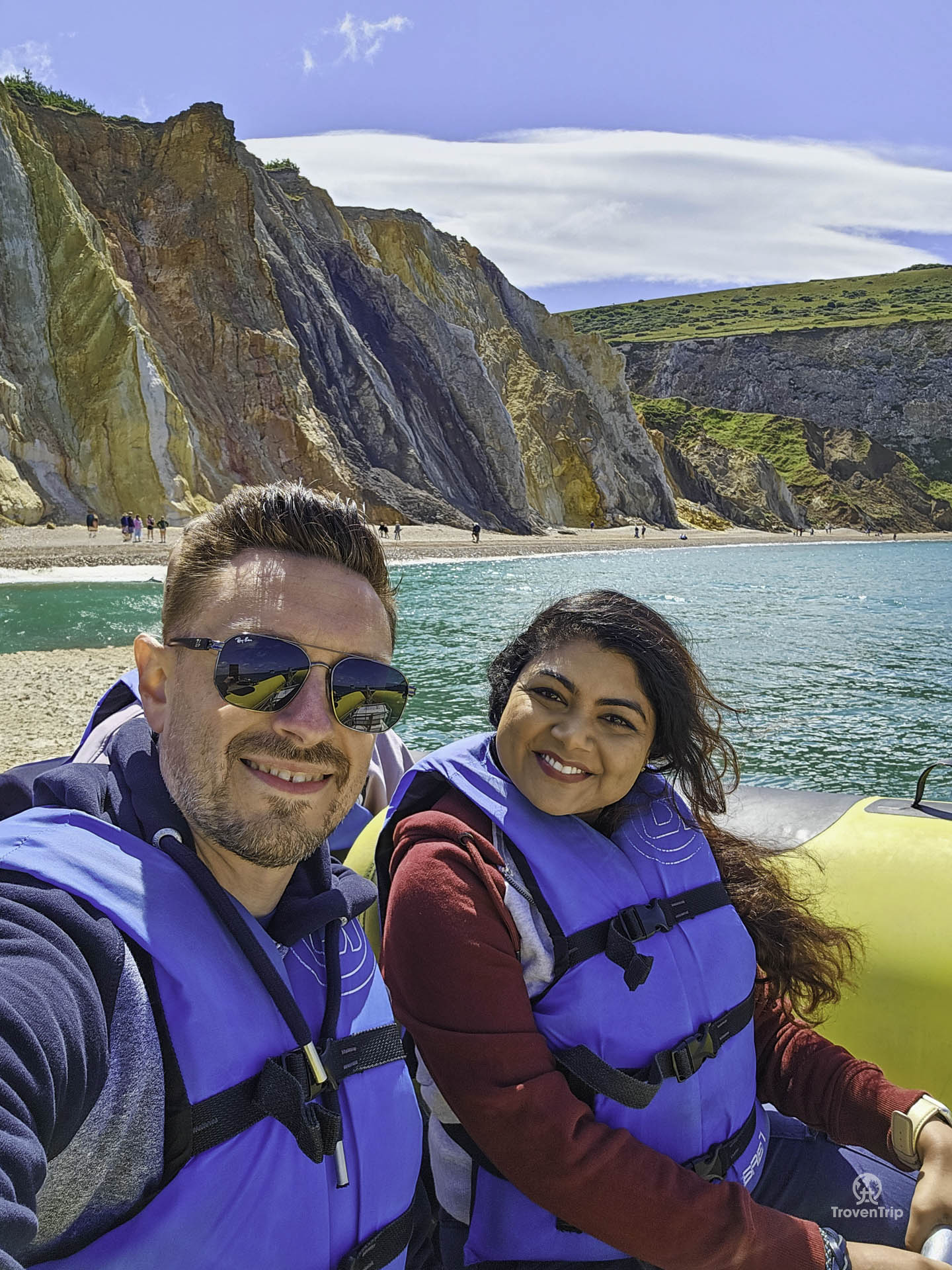 The rocks and lighthouse are amazing to see up close, and the view of the multicoloured cliffs in Alum Bay are stunning as we zip back towards them!