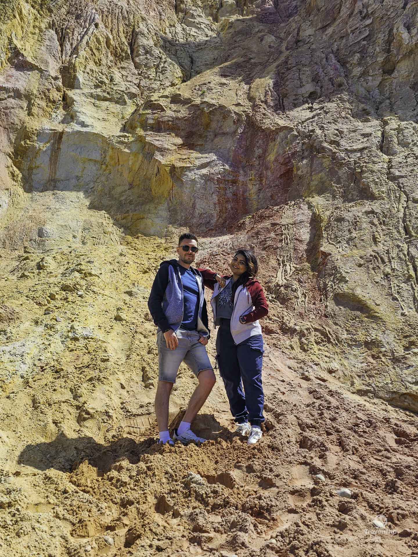 Back on dry land we admire the multicoloured sand cliffs up close... they're so bright and vibrant, and so cool to see!