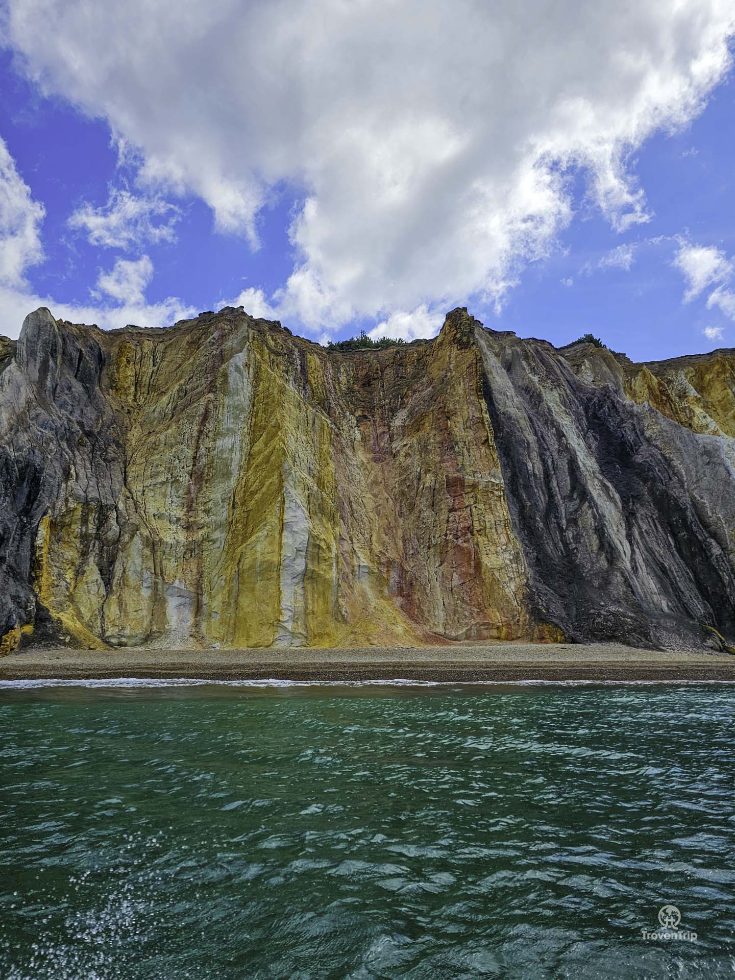 The rocks and lighthouse are amazing to see up close, and the view of the multicoloured cliffs in Alum Bay are stunning as we zip back towards them!