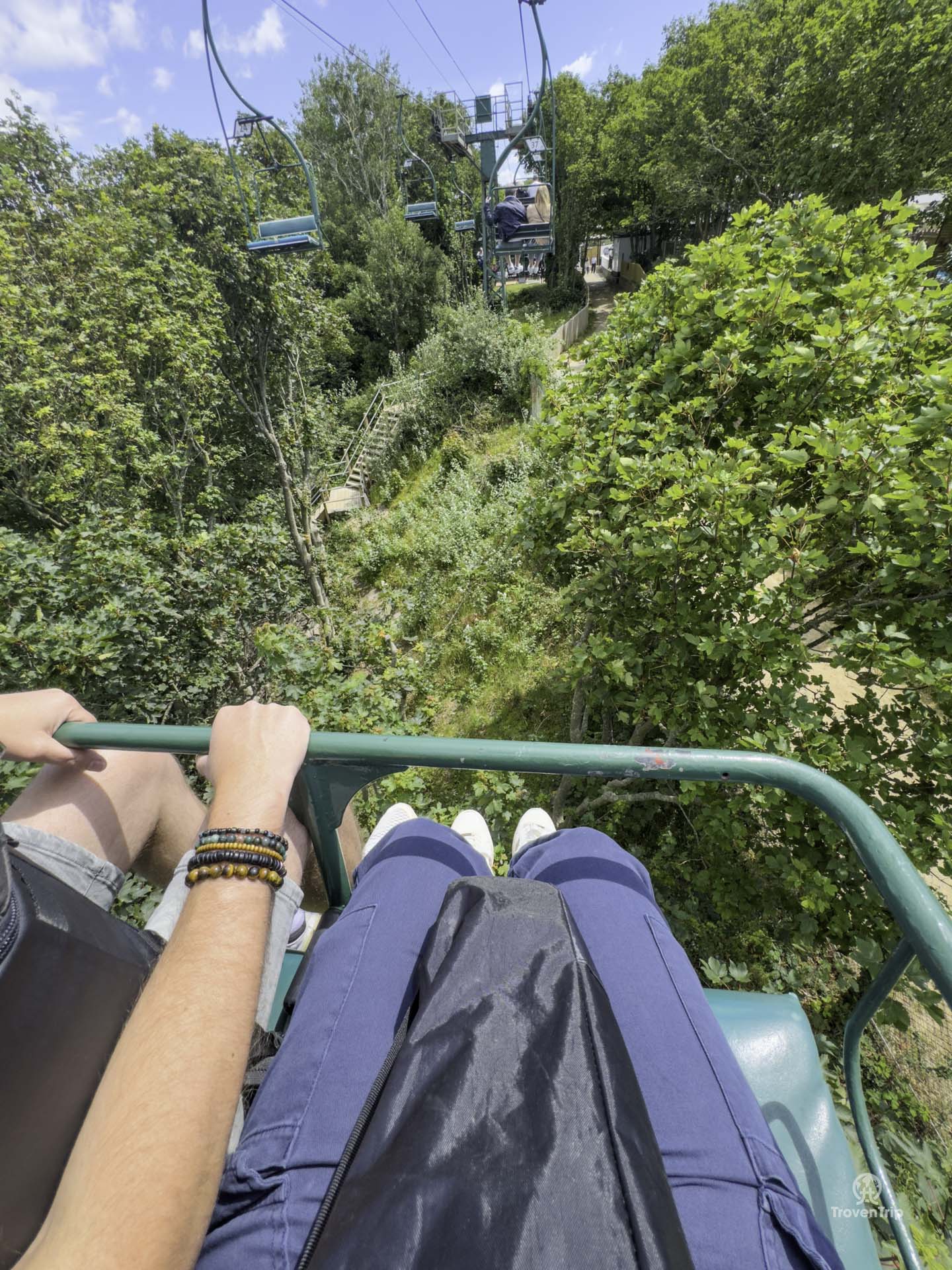 Even though Paul isn’t a fan of heights, we take the chairlift down… and despite the slightly wobbly-looking chairs, the stunning views totally distract him from the drop!
