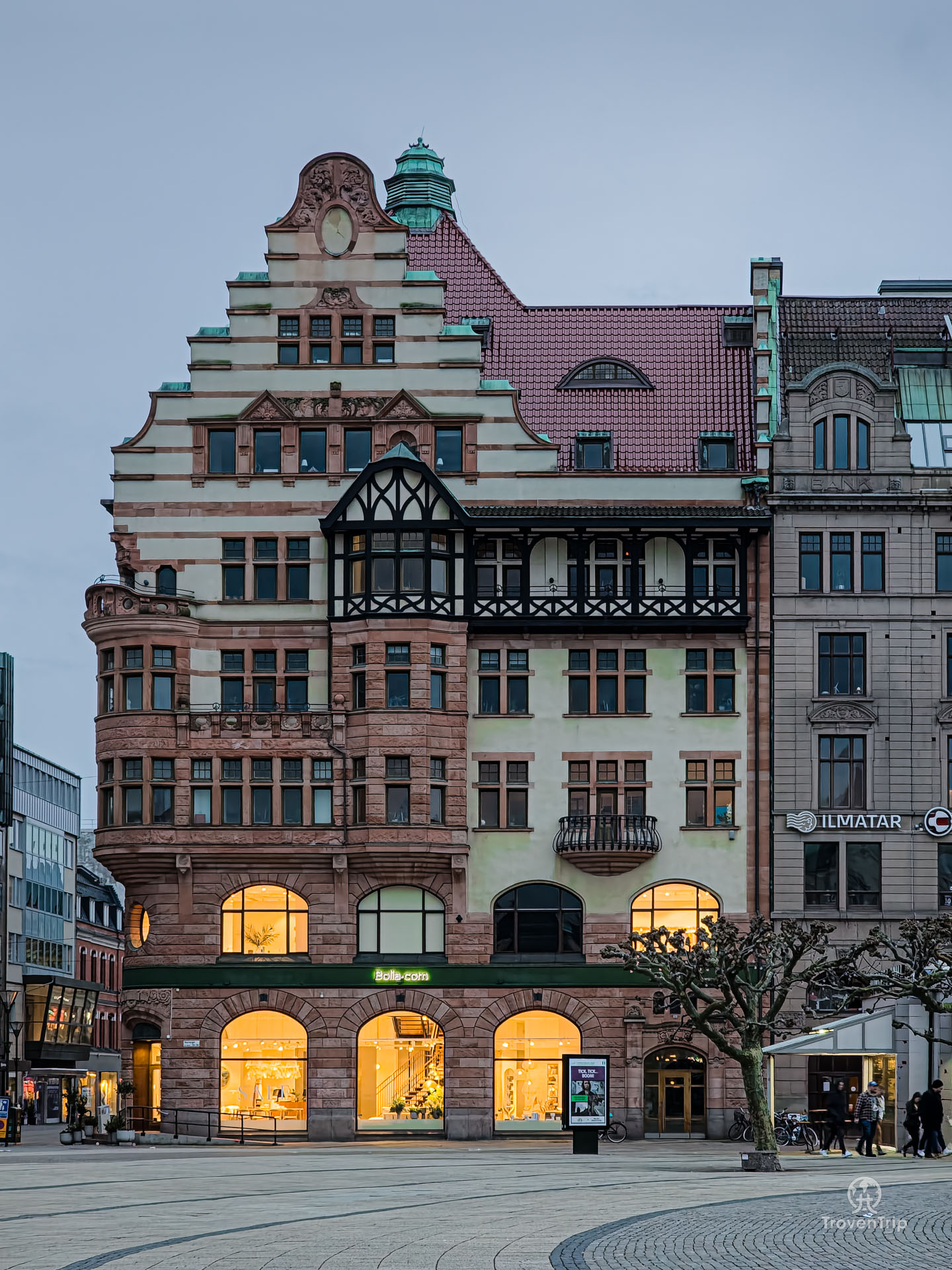 But it’s Malmö Radhus itself which has to be seen. We reach at the perfect time in the evening, just after sunset, so it’s still light enough to see but its dark enough for the lights to brighten up the more intricate details and statues. Utterly stunning!