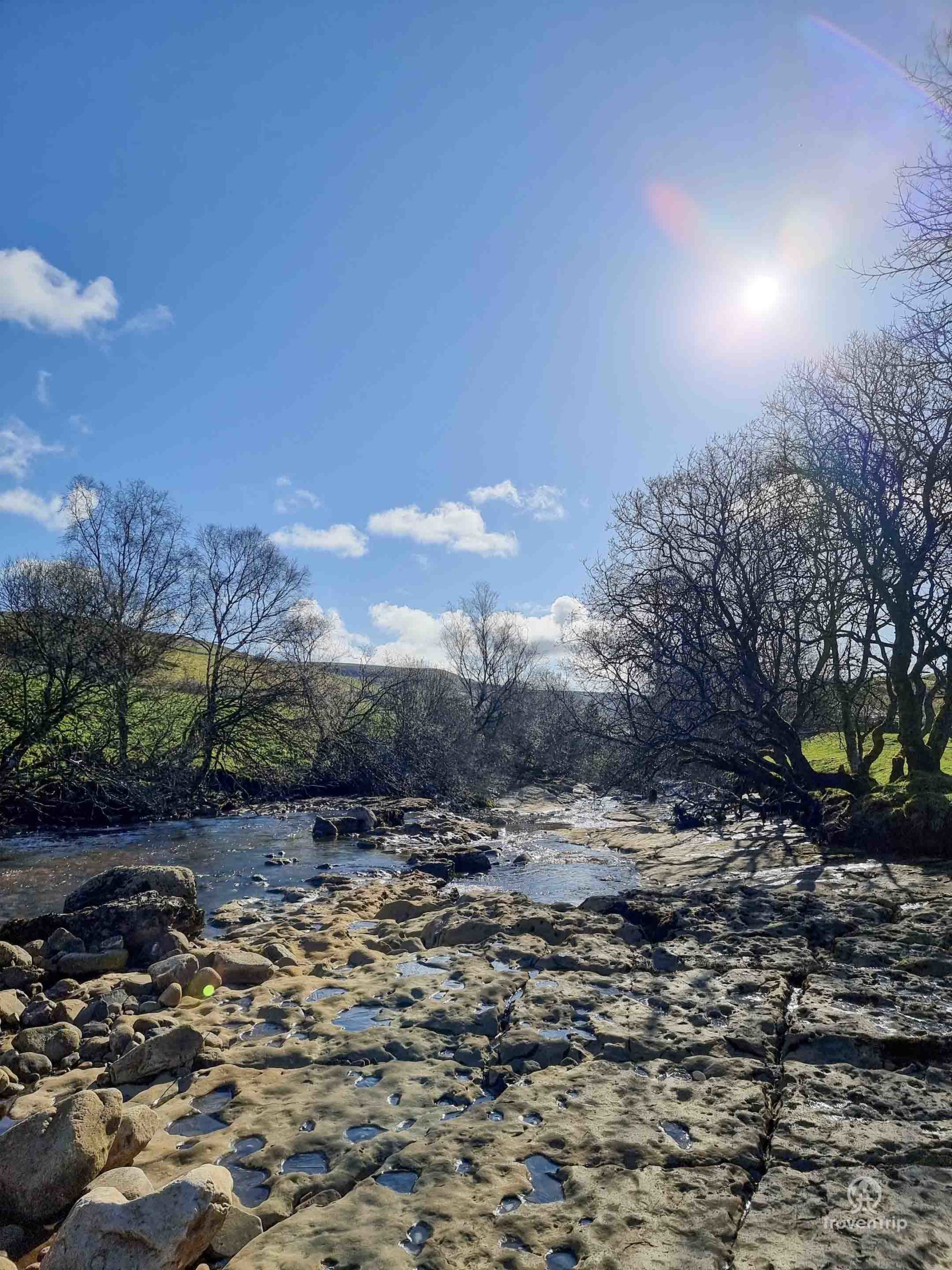 Although not the biggest or most impressive waterfall I’ve ever seen, it’s a really nice spot being able to walk right up to the river’s edge on the rocky ground. And although it’s a beautiful morning, it’s unseasonably cold (-2°C) which is evident from the frost on the grass and the iced over rock pools.