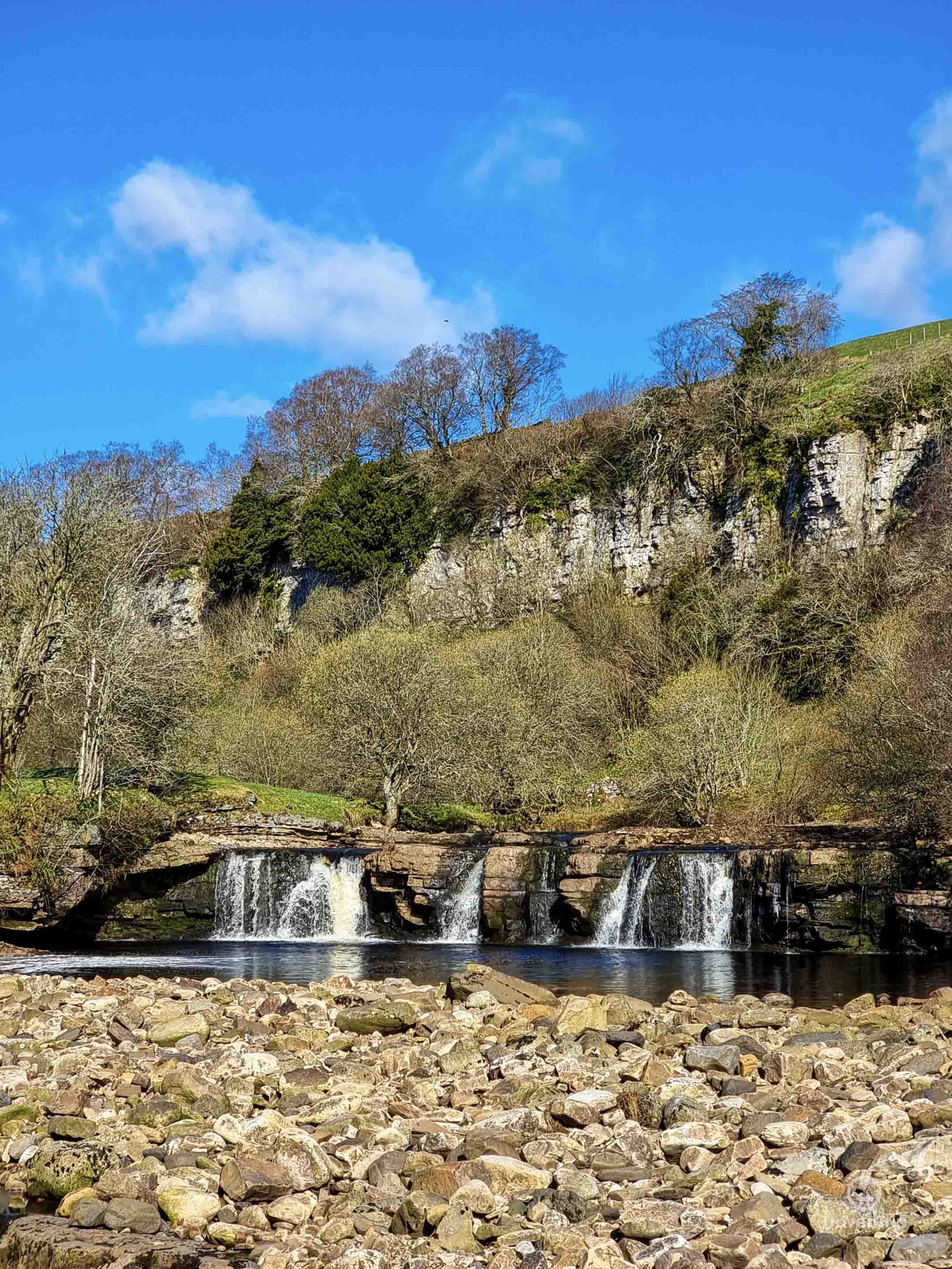 There a lot of newly born lambs who aren’t yet steady on their feet, so I’m careful not to scare them too much as I attempt to tiptoe through them to the next waterfall which I can see down the hill in the distance.