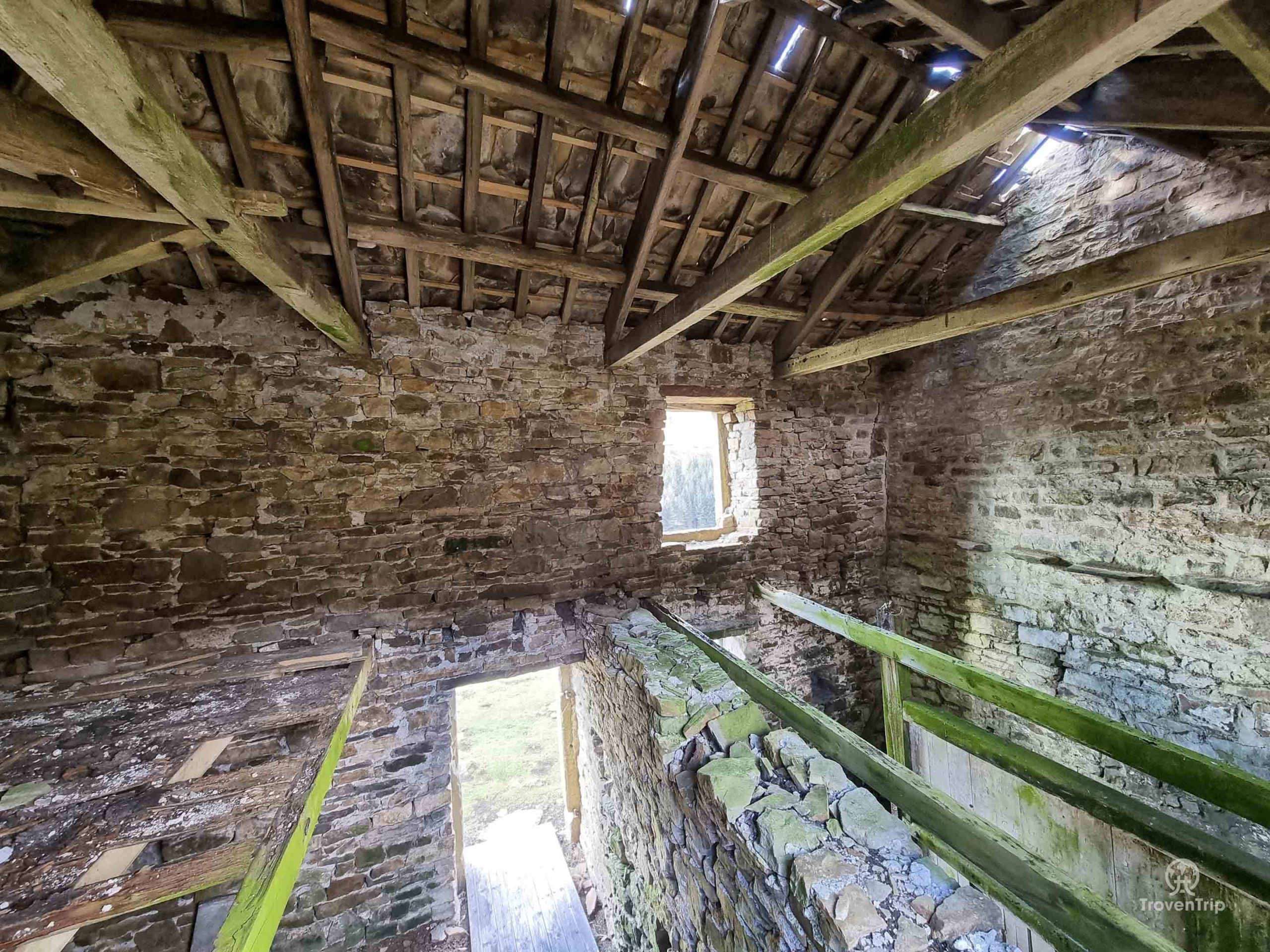 As I get closer I realise it’s just an abandoned barn, or Cow’us as the locals apparently call them (is it any wonder the visitors in the 30’s couldn’t understand Alice?!). The shell of the cow’us is largely intact, and provides a warm-up explore before the main event of Crackpot Hall to come…