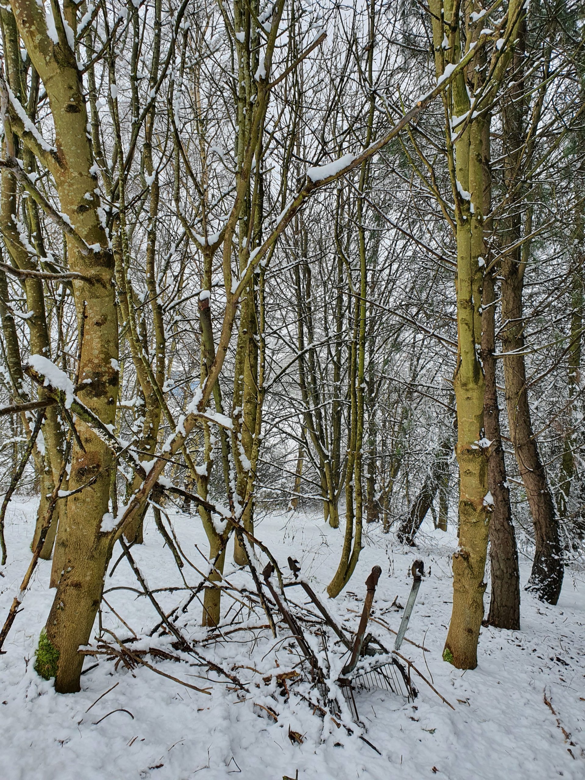 It still made for a good walk though… starting from the end of Owlcotes Lane I headed along the public footpath between the farmer’s fields, and soon reached a treed area which the map suggested was the site of the village. Hunting around through the snow I couldn’t find or see any sort of monument, so after a few minutes, gave up and headed off towards the adjoining woods instead.