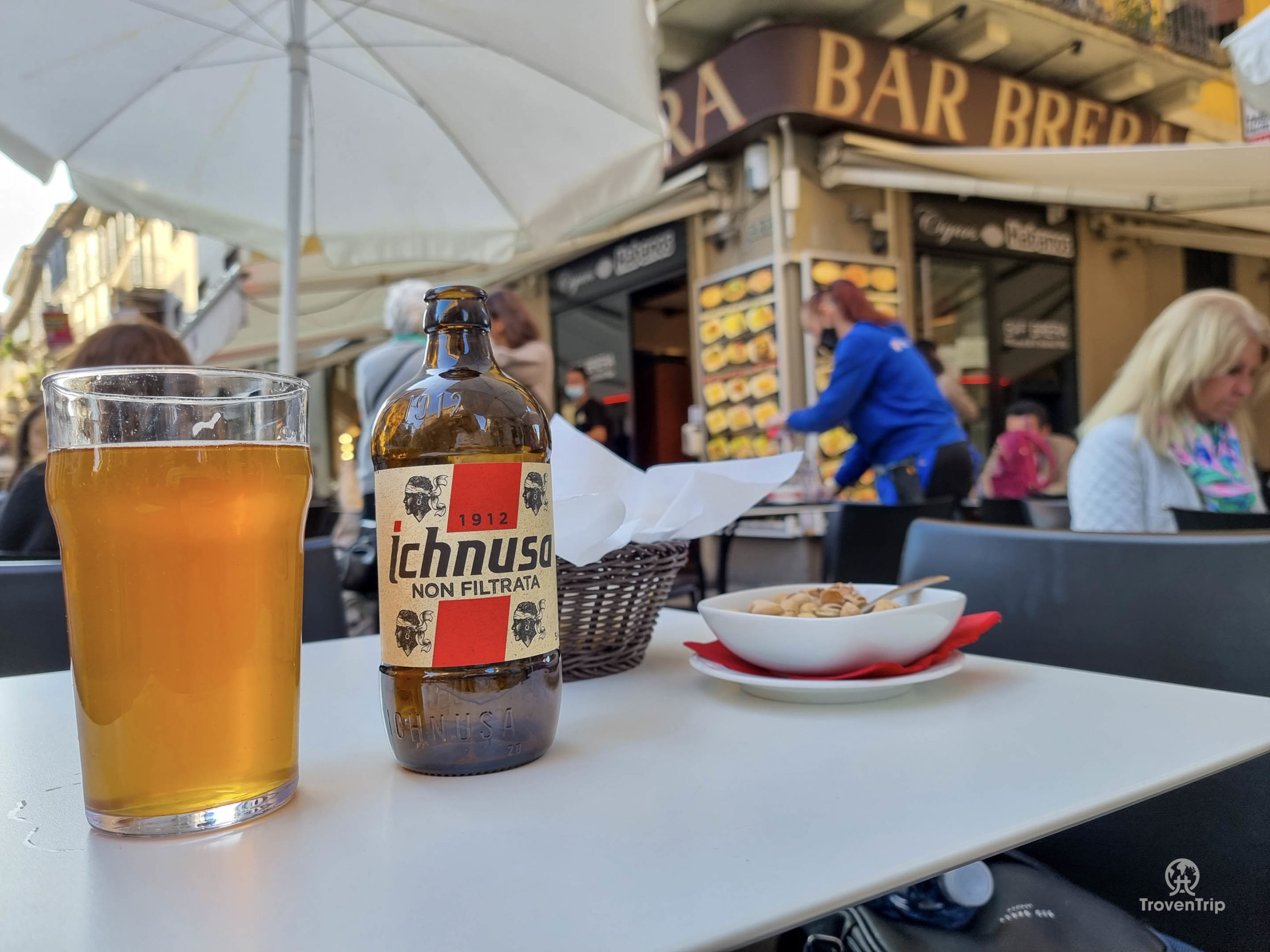 The other tables are full of a mixture of locals and tourists, some enjoying coffee, some an early dinner, and some having Friday evening drinks. Feeling refreshed after the coffee I decide to join the drinkers and order a beer… taking the server’s advice I opt for an ichnusa which she seems happy about, and I am too as it’s lovely!