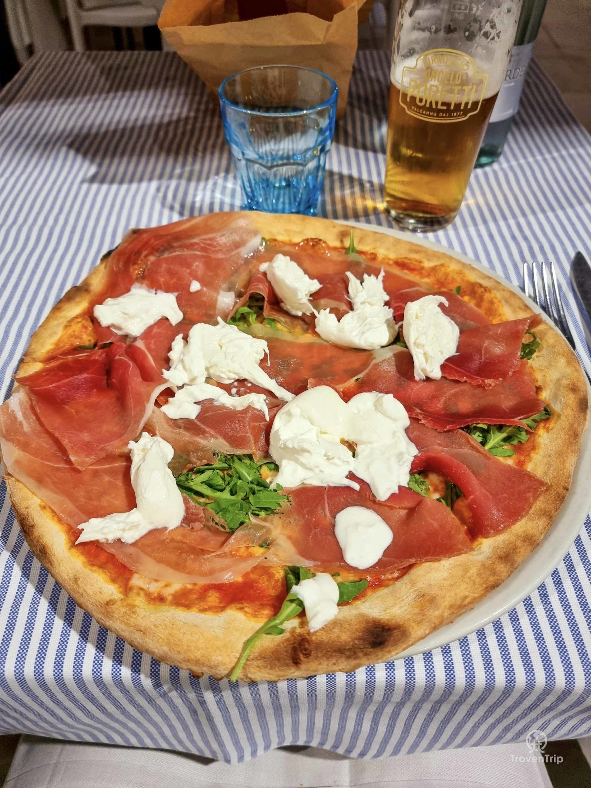 As is often the case when I’m travelling, I ask for the waiter’s recommendation, and go for smoked carpacci bis (tuna and swordfish) to start, followed by a don raffaè pizza. Both are delicious!