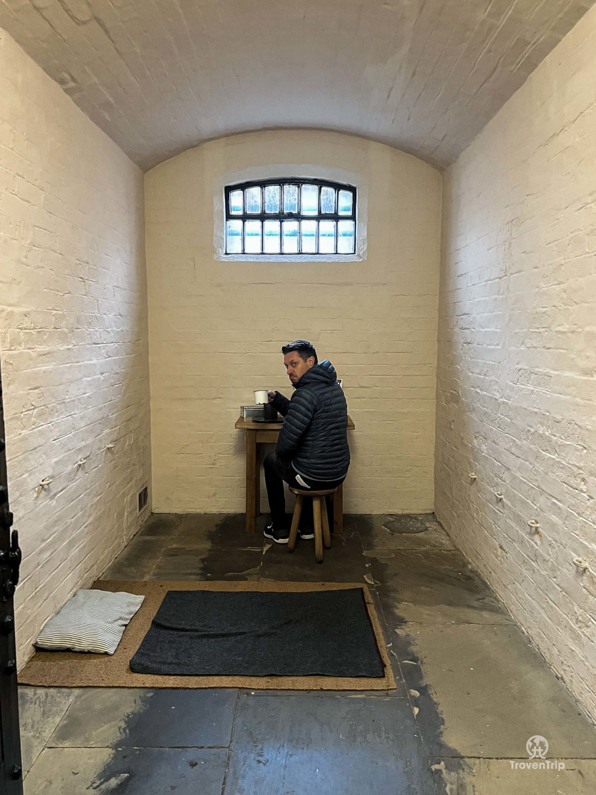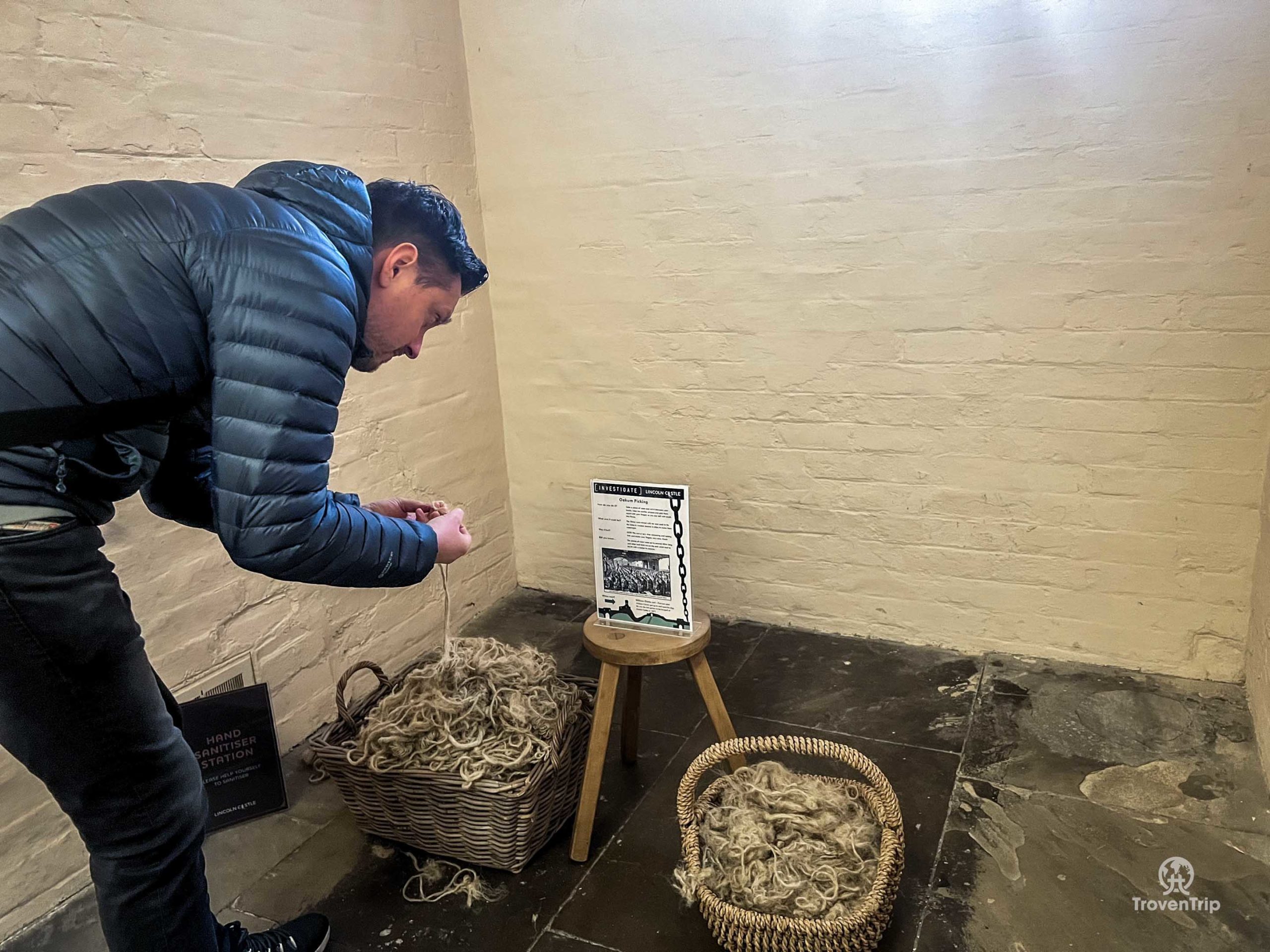 There’s lots for us to explore in the rest of the prison too… cells are set up with activities to try which the prisoners would have done as punishment / jobs… Paul tries “Oakum Picking”, while Sneha takes the easier route and plays some games instead! We also both play prisoner in some of the cells, and Paul sits in the governor’s chair pretending that he’s in charge for once!