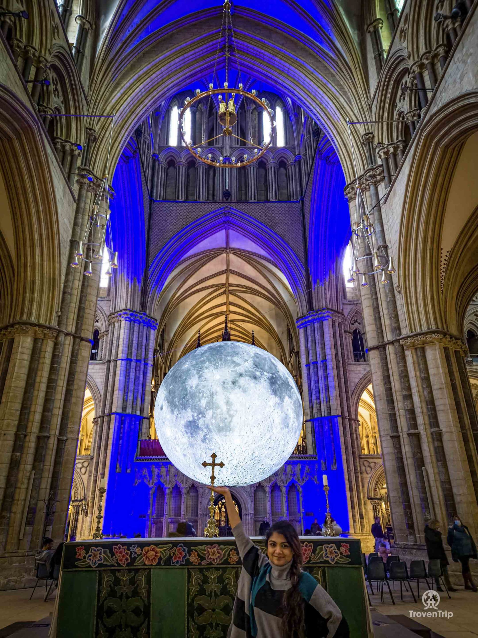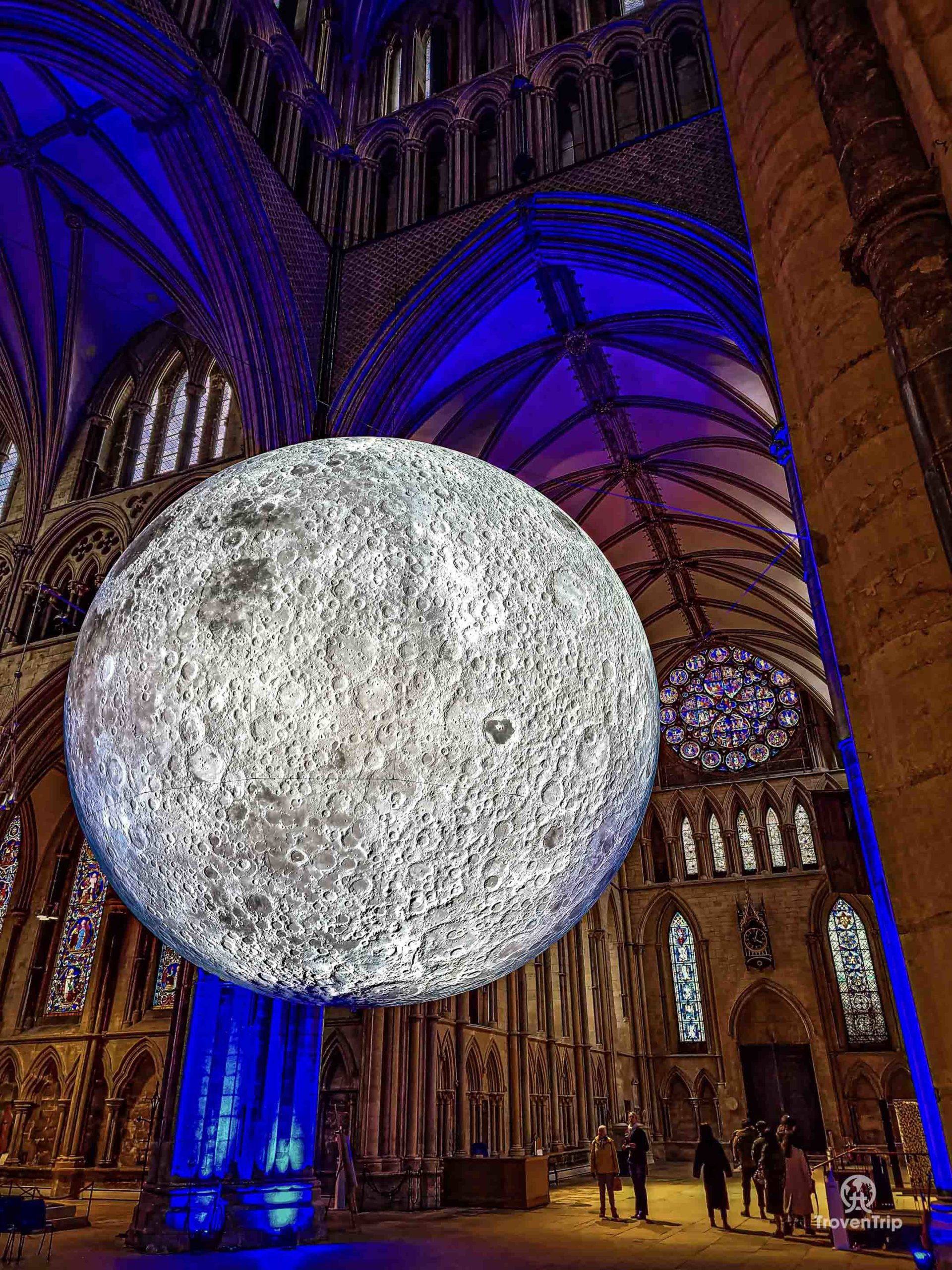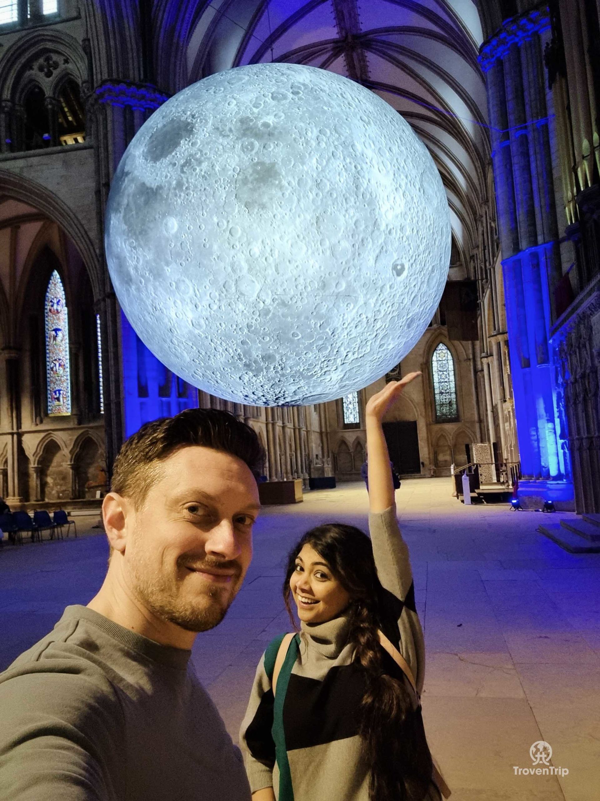 When we first came in we saw a huge moon floating in the air so we go back to the entrance to see what that is all about too… it’s the Museum of the Moon, an artwork made of detailed NASA satellite images creating a 7-metre-wide moon! It’s quite a strange thing to find inside a Gothic cathedral, but it looks cool all the same!