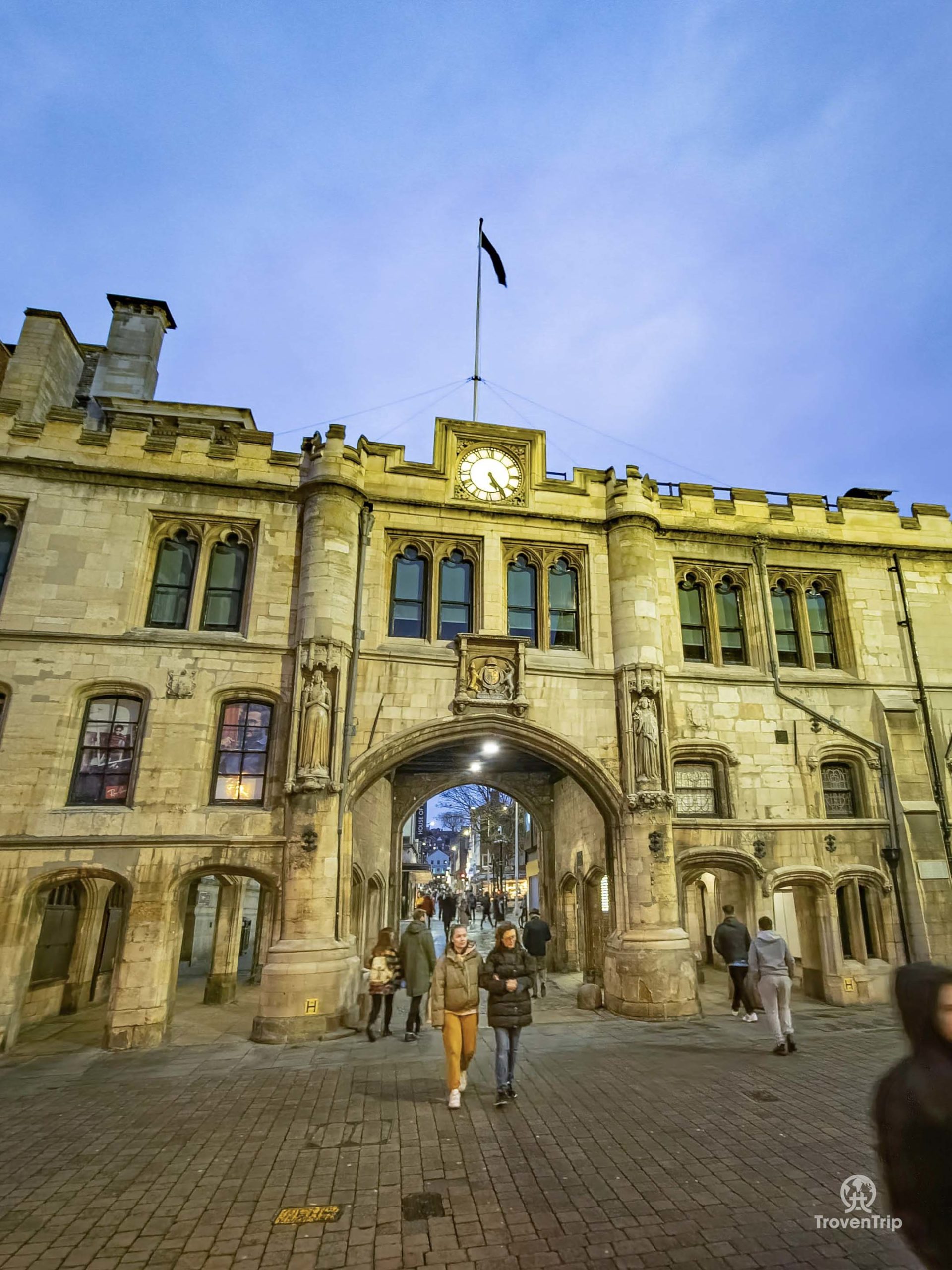 We make our way through the mix of shoppers, revellers and football fans as we head downhill to Lincoln Guildhall and Stonebow. The building has been used as council offices since the early 16th century and tours of the interior are available, but we’re happy with some photos of the outside and to move to our next stop.