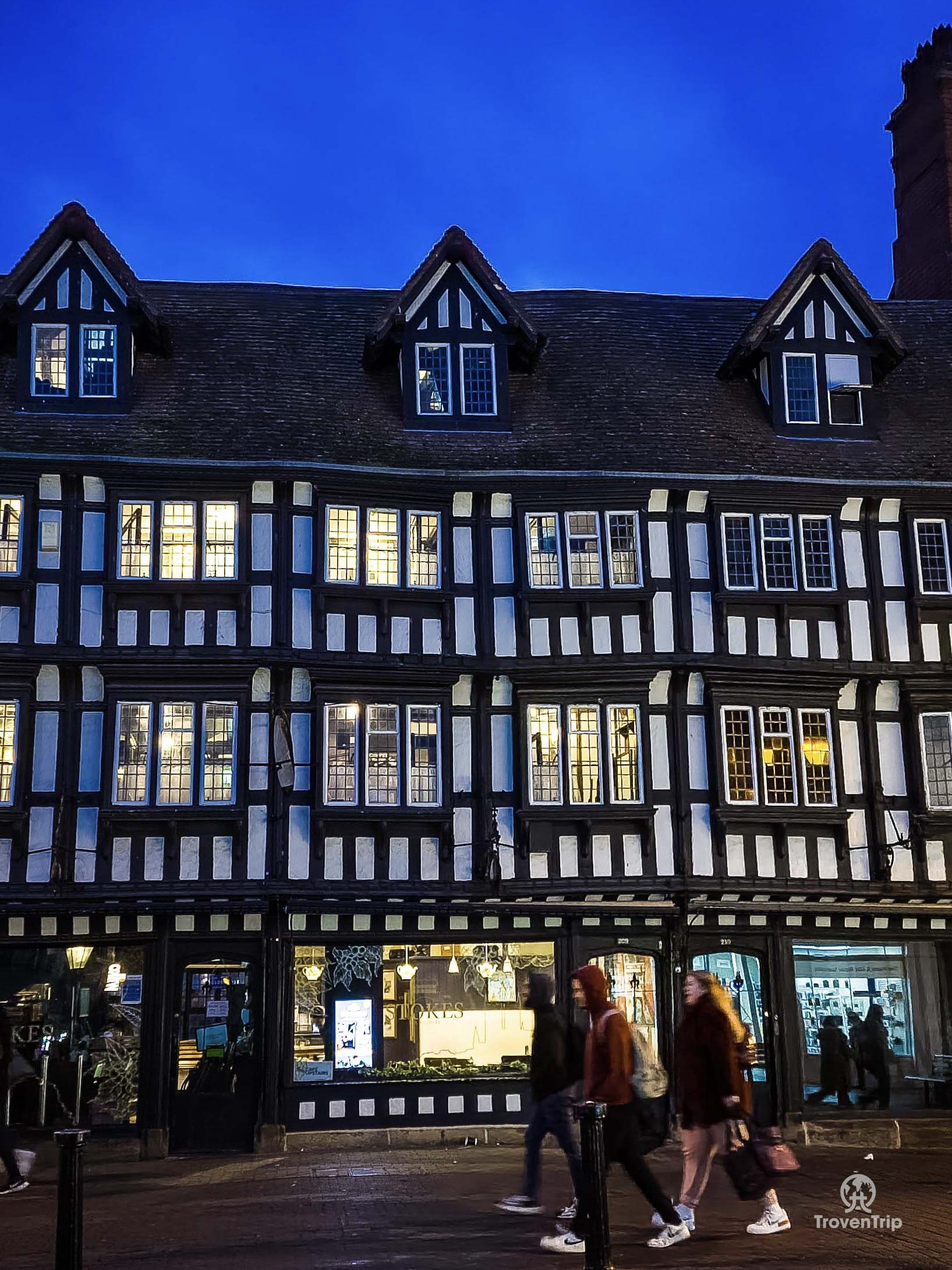 High Bridge is the oldest bridge in the UK with buildings on, dating back to 1160, with the current buildings being from around 1550. And their Tudor style is clear to see with the black and white timber frames.
