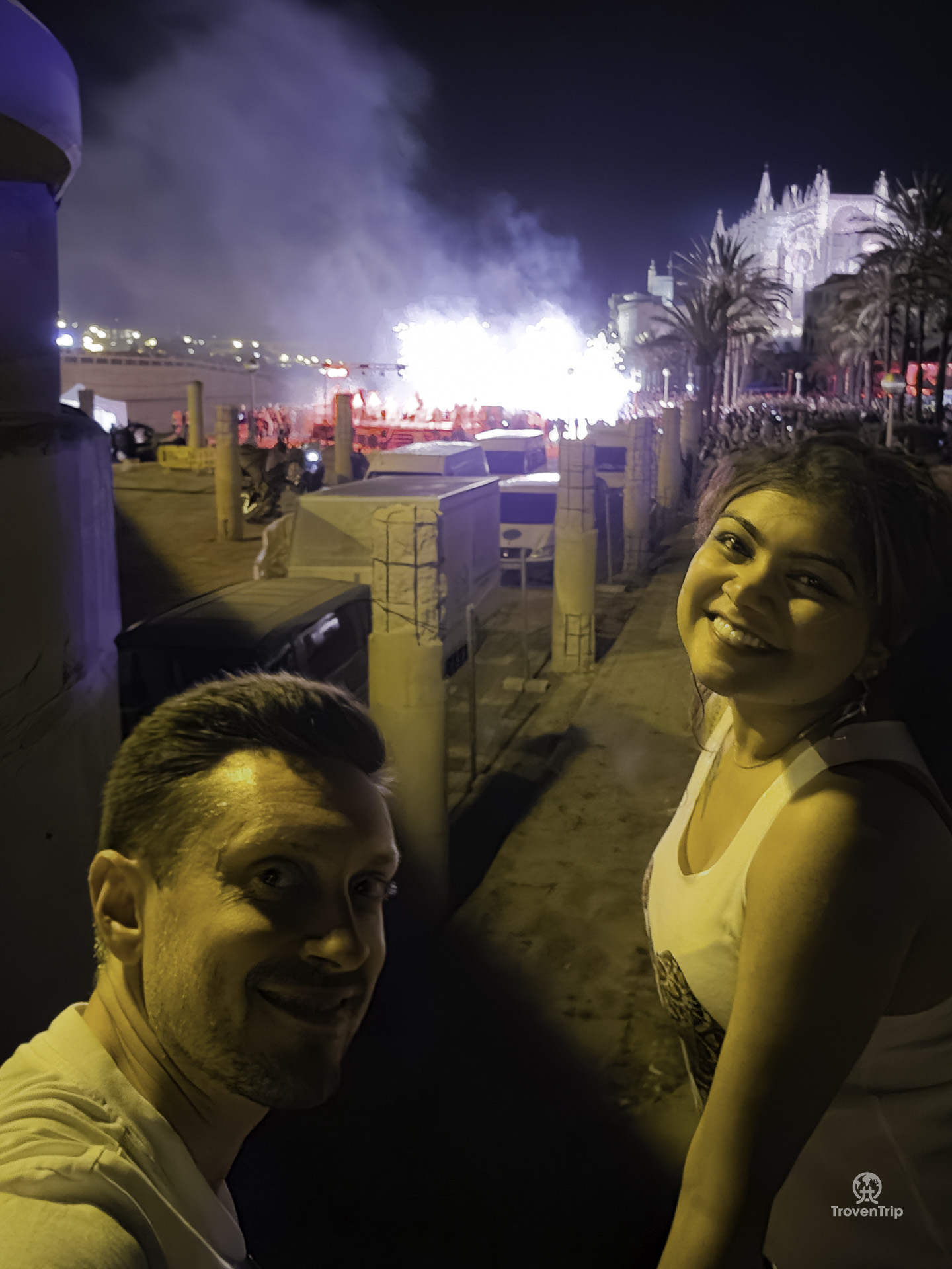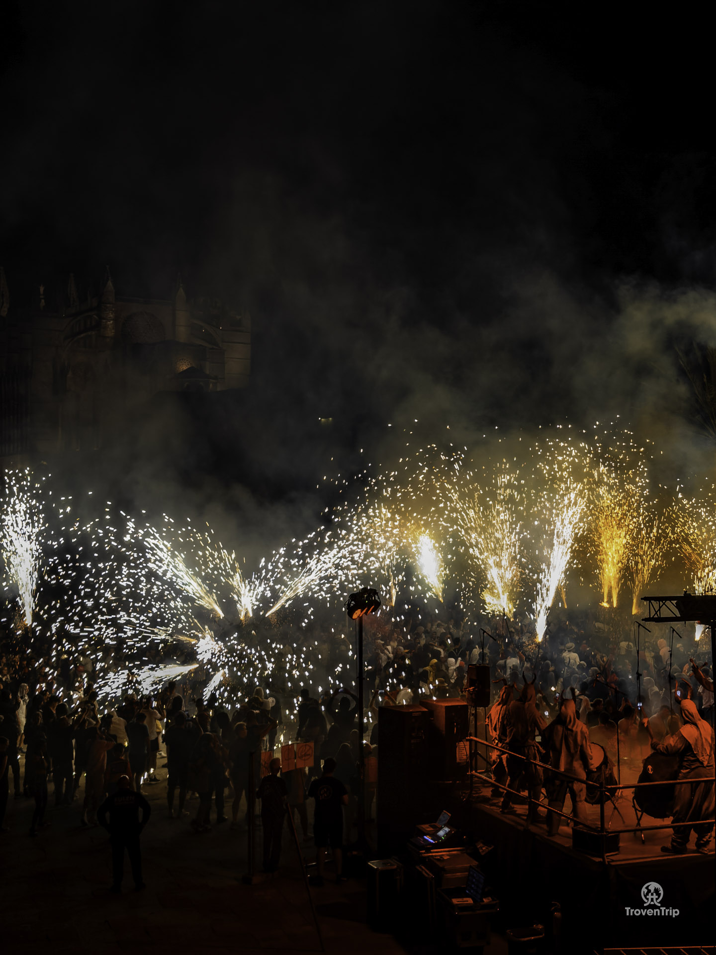 The action takes place in Parc de la Mar, on the seafront and underneath the amazing Cathedral de Mallorca. It's an incredible setting, seeing demons dance and throw fire, with the smoke from fireworks rising and obscuring the lit up Cathedral. It's so cool!