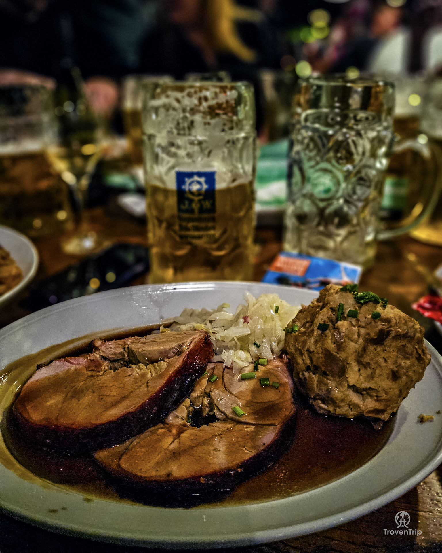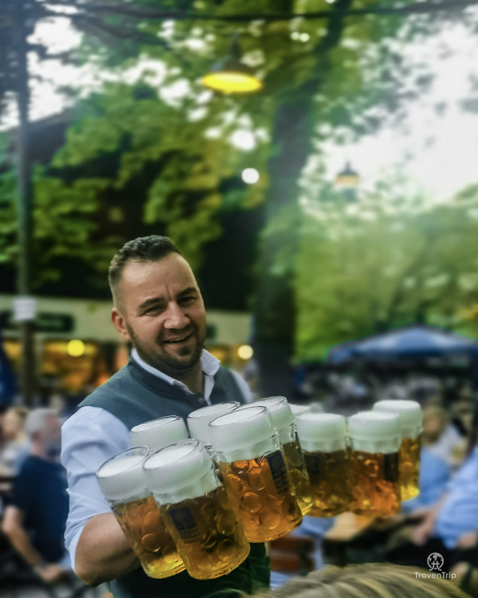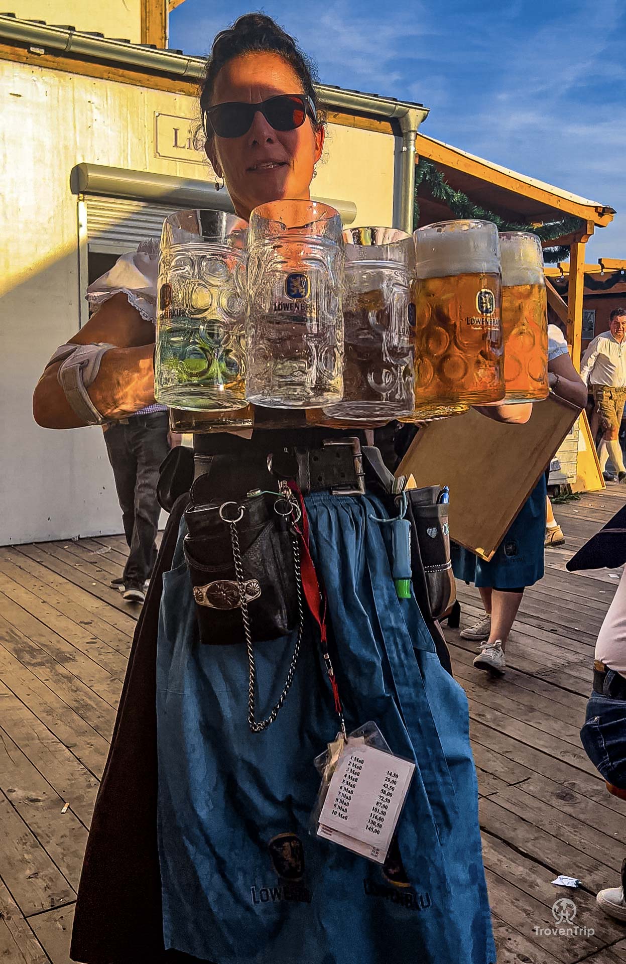 We sit down and order 8 beers from the server, and when they come… how is she carrying so many steins at once?? We struggle to pick 1 up, but she’s carrying 8!