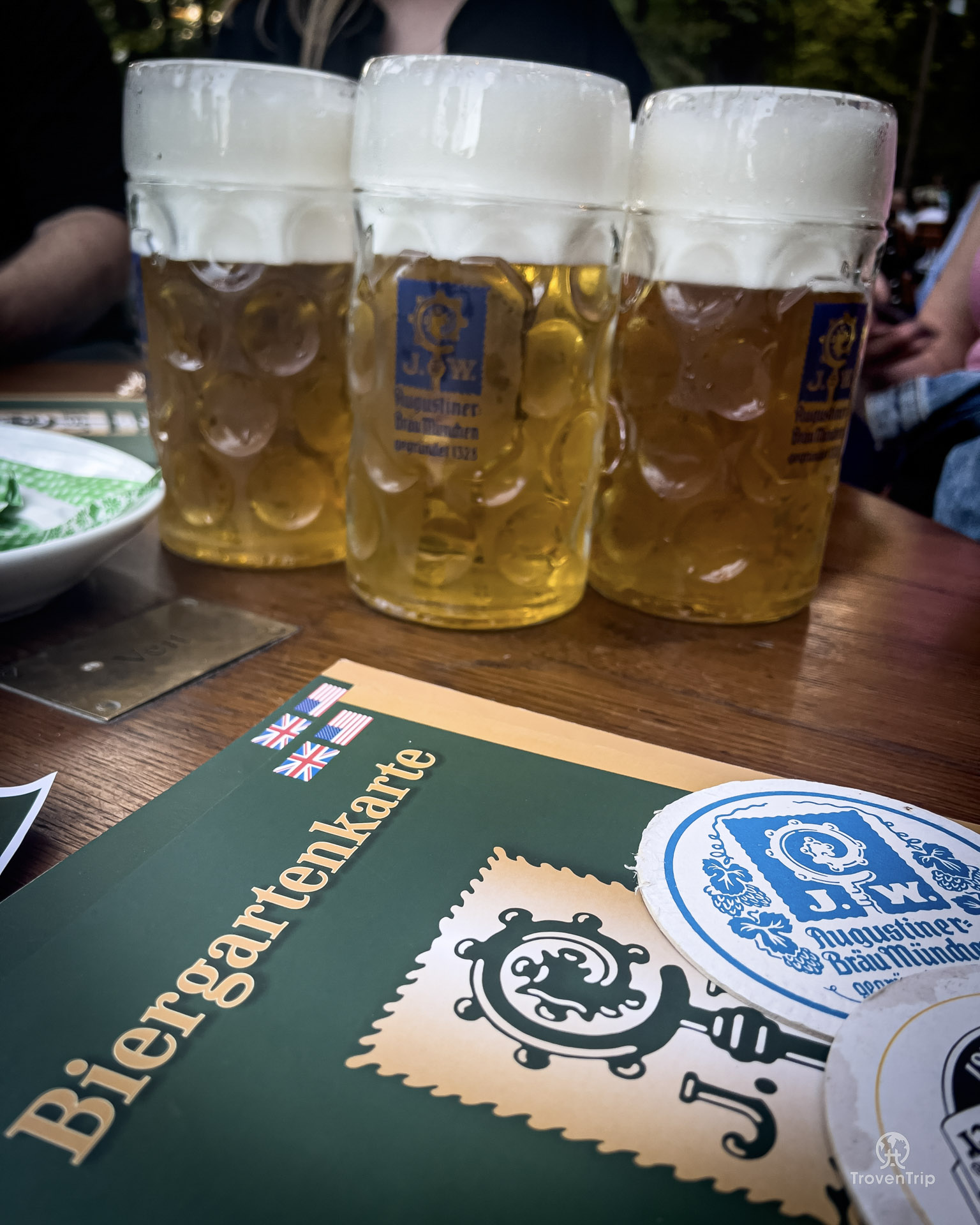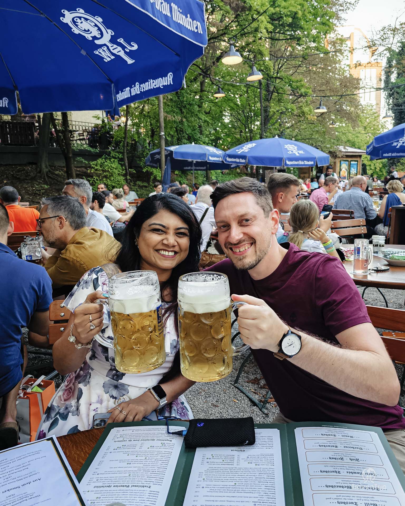 Our favourite spot of the whole weekend is possibly Augustiner-Keller. It’s a huge beer garden and beer hall only a few minutes’ walk from the Haupbahnhof (main train station) and is our first real experience of Oktoberfest after arriving in Munich and leaving our hotel.