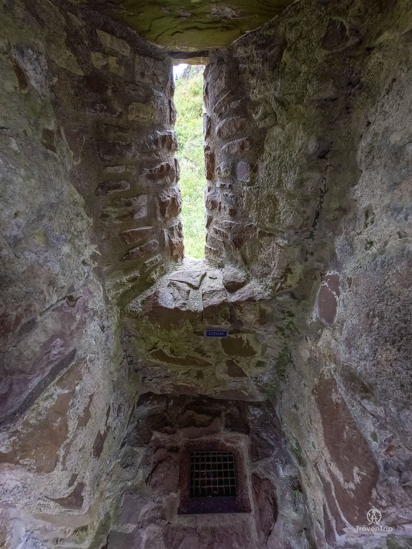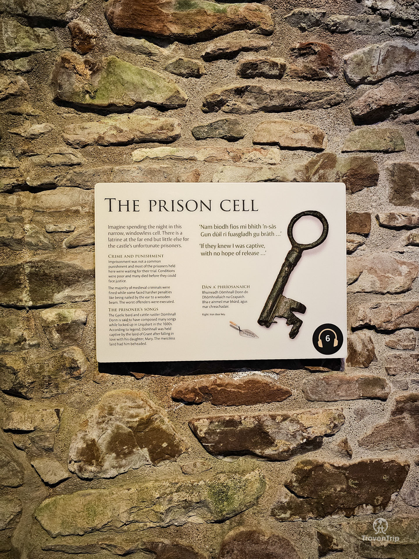 Crossing the bridge and passing the destroyed gatehouse, we explore the Grant Tower, which is the best preserved section of the castle, as well as seeing where the great hall would have been, the old keeper’s lodge (complete with toilet!), and a miserable prison cell said to have held the legendary Gaelic bard Domhnall Donn.
