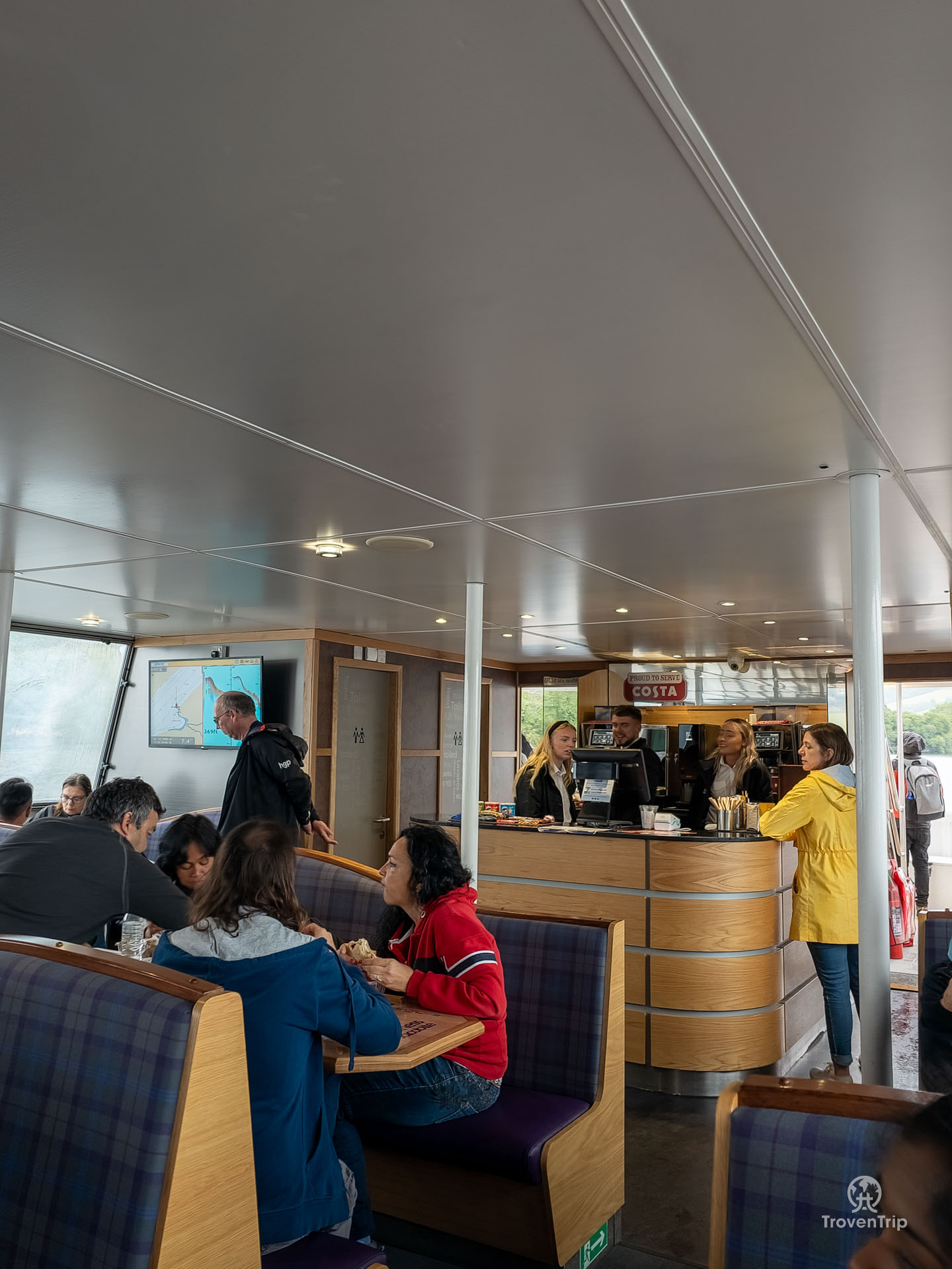 With the rain showing no signs of letting up we head back to the boat early to get first in line to make sure we can get seats inside the boat! And we get to take advantage of the onboard bar too, warming up with a coffee (the bar is also licensed so alcohol is available too).