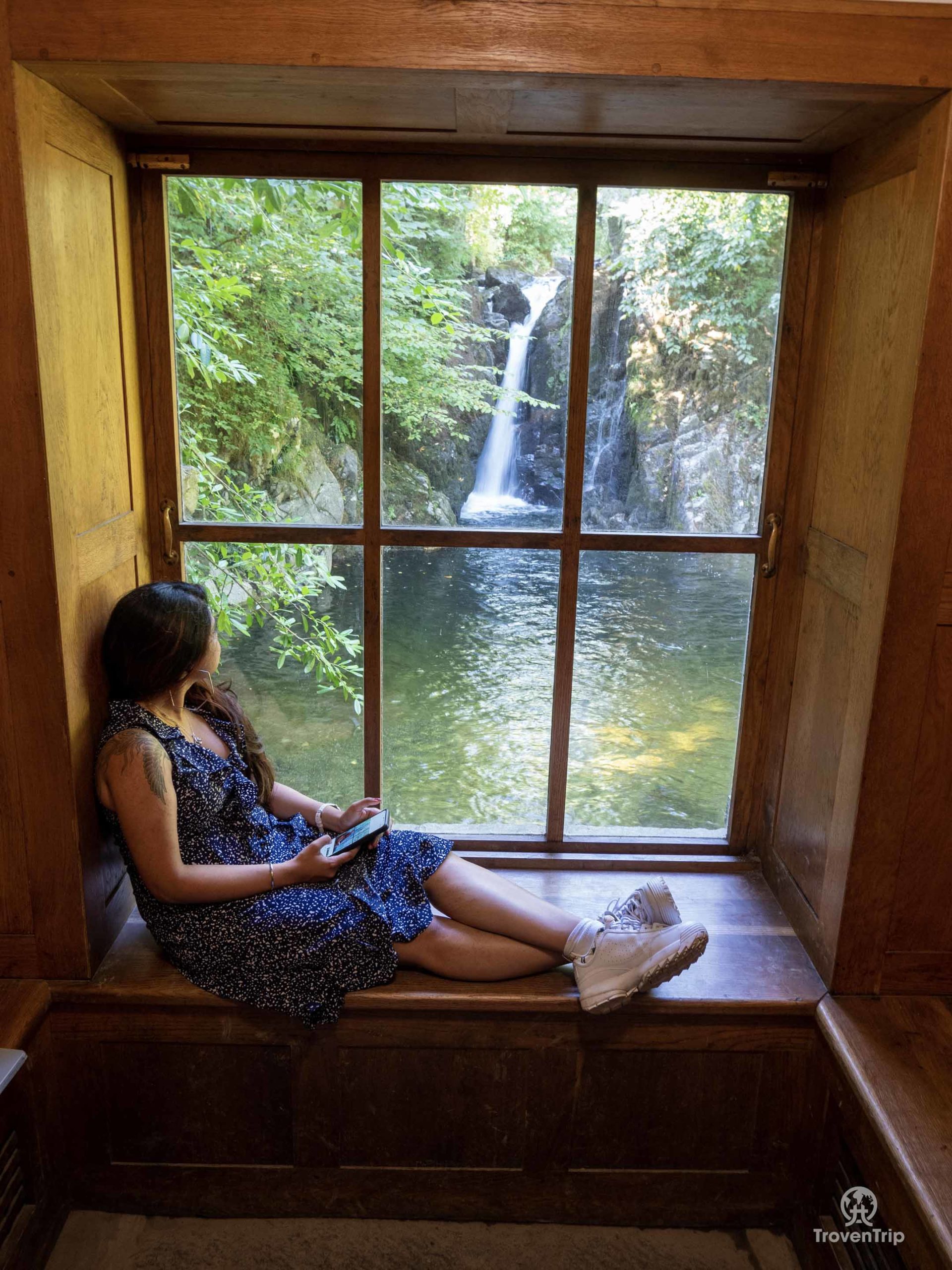 As you approach the Grot from the footpath you can’t see the waterfall, so when you open the door, it’s spectacularly framed by the large window on the back wall… a stunning view! And a great place to take our next set of shots!