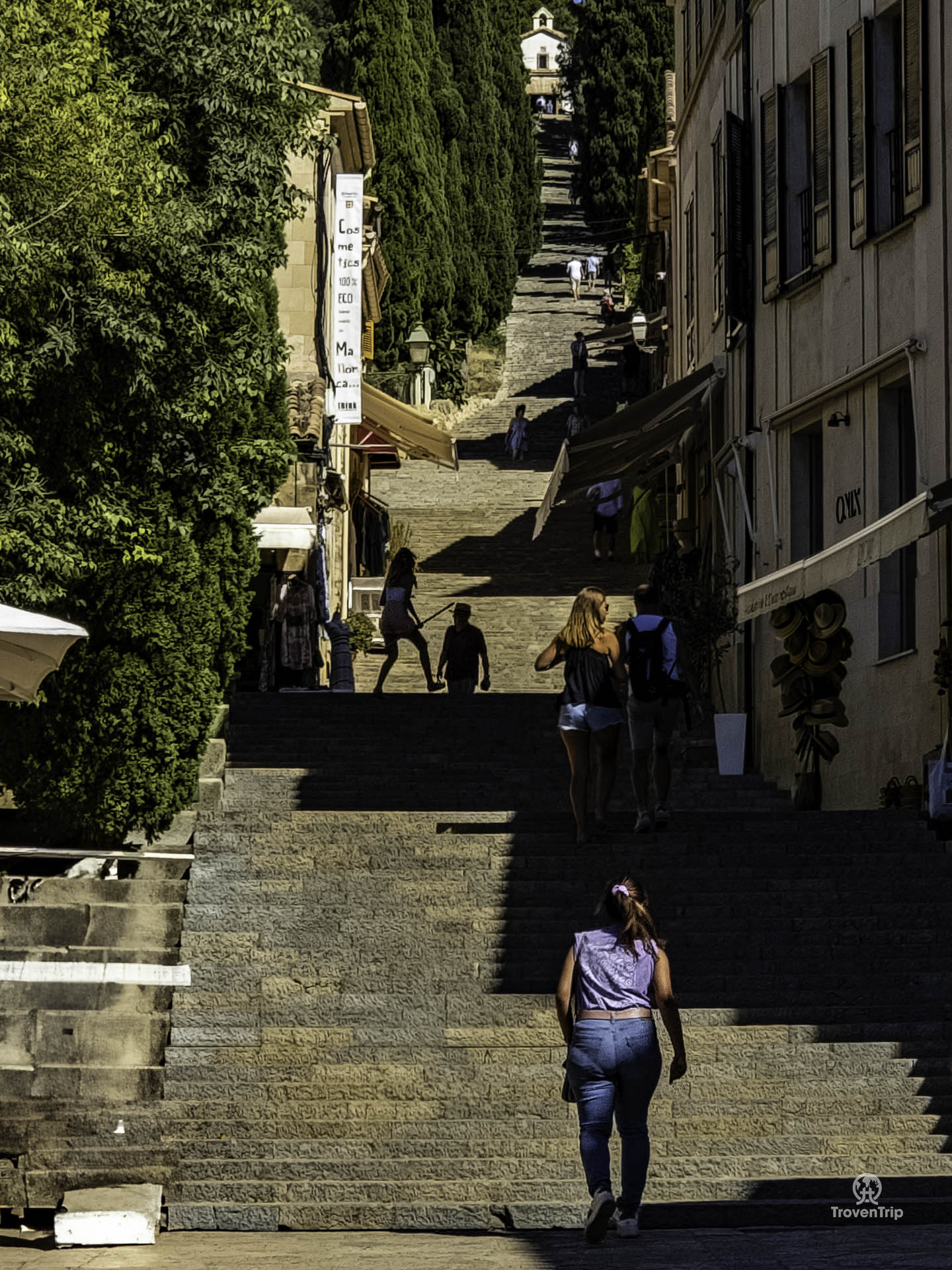 The main sights we see are the El Calvari / Calvary Chapel which is a long walk up 365 steps to reach. And the Santa Maria de Pollença church on the main town square.