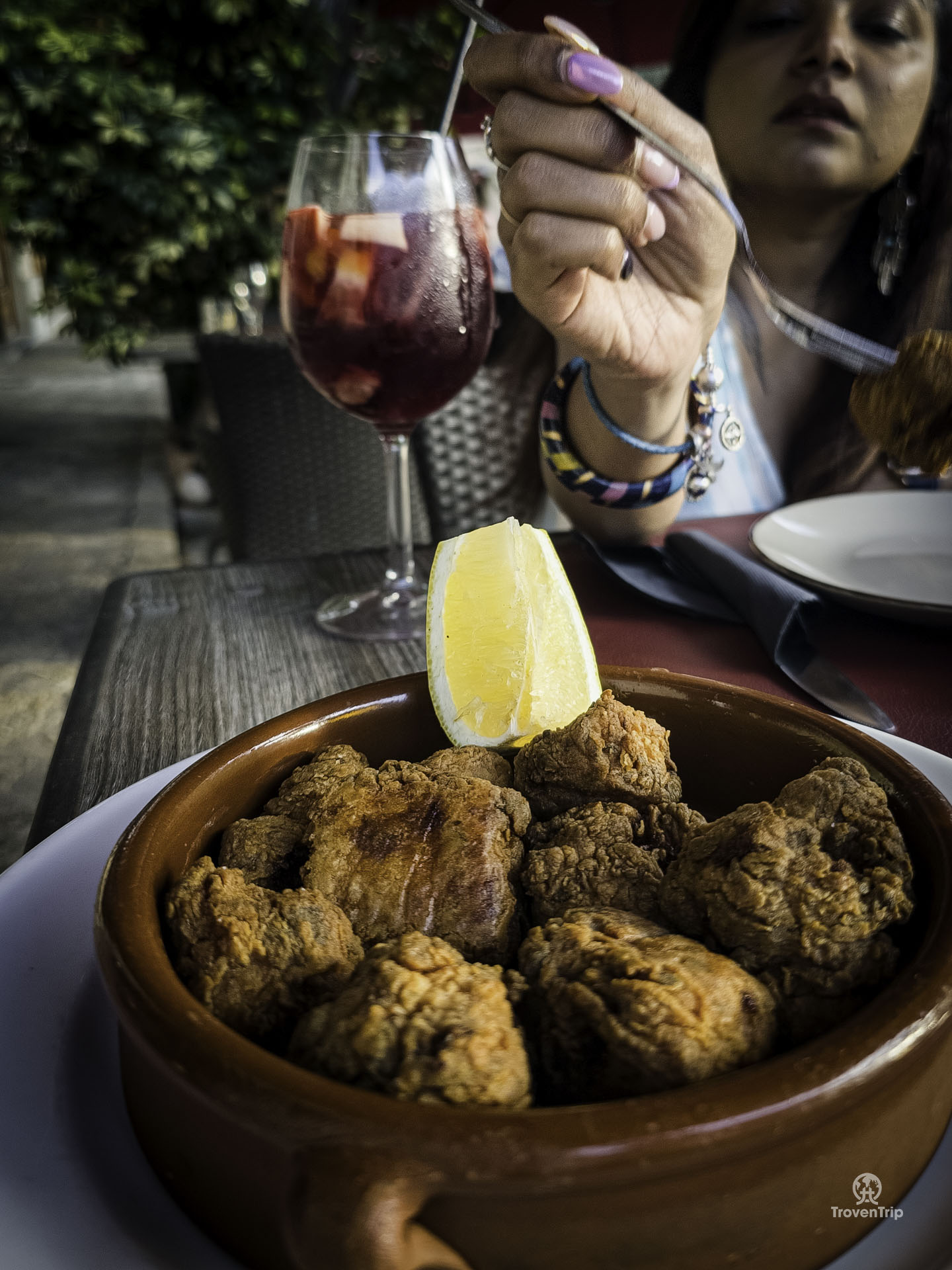 So we head back to the centre and eat at Sa Mata Paelles & Cuina Mallorquina. The restaurant has a lot of traditional Mallorcan dishes on the menu, and after taking the waiter’s advice, we go for marinated dogfish to start followed by slow cooked rabbit and stuffed squid with meat and herbs.
