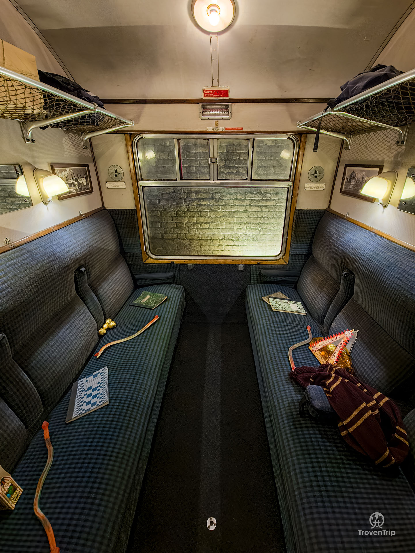 We rush down the platform and climb aboard just in time, being taken through a journey through the movies as each carriage is decorated to depict a scene from each. From carriages strewn with sweets and school clothes, to Ron's handprint on the window from when the Dementors attacked, fans will recognise the key scenes filmed on the Hogwarts Express.