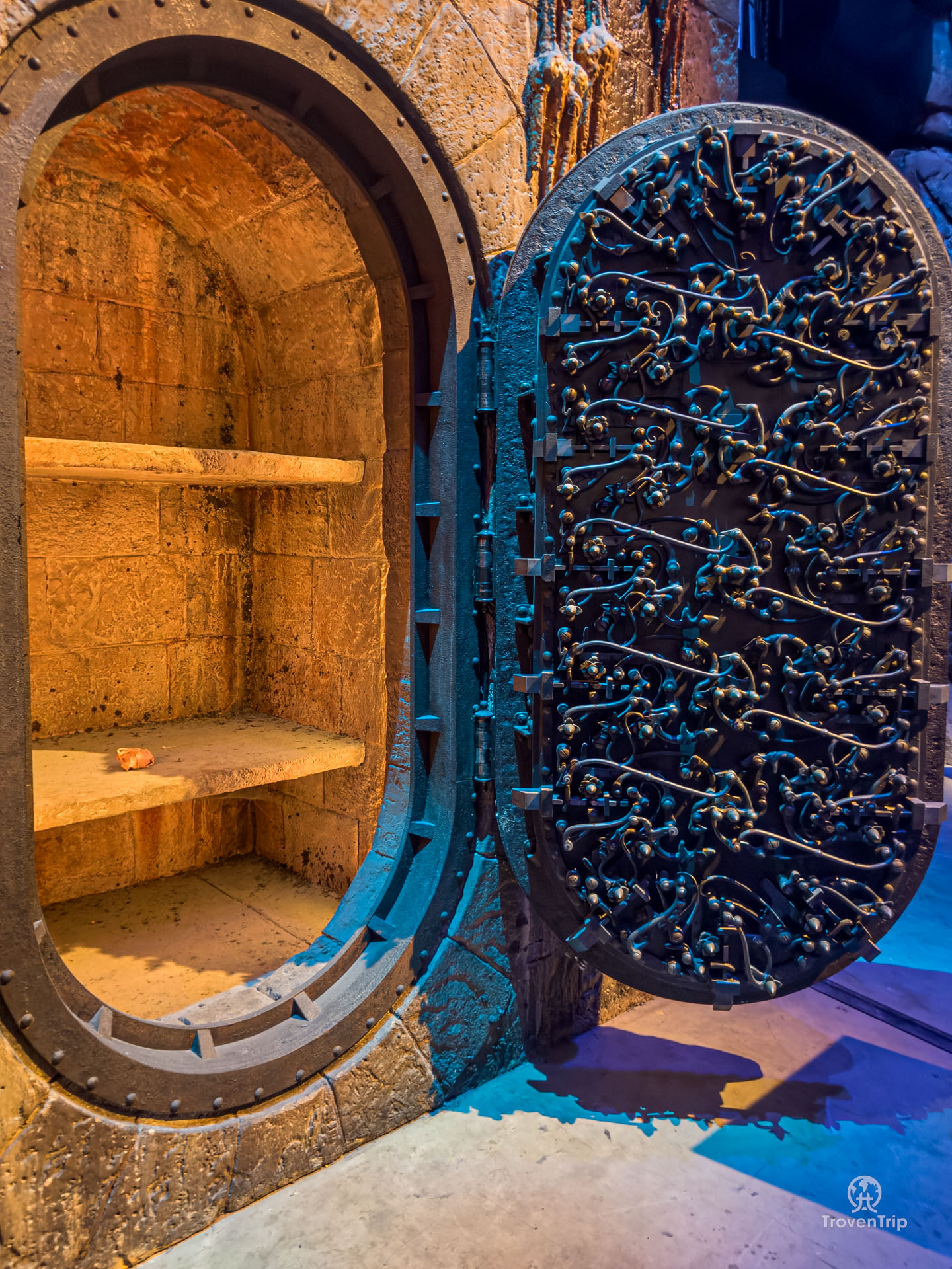 After having asked the goblin bank teller very nicely, we're allowed to enter the Gringots Vaults before we leave!