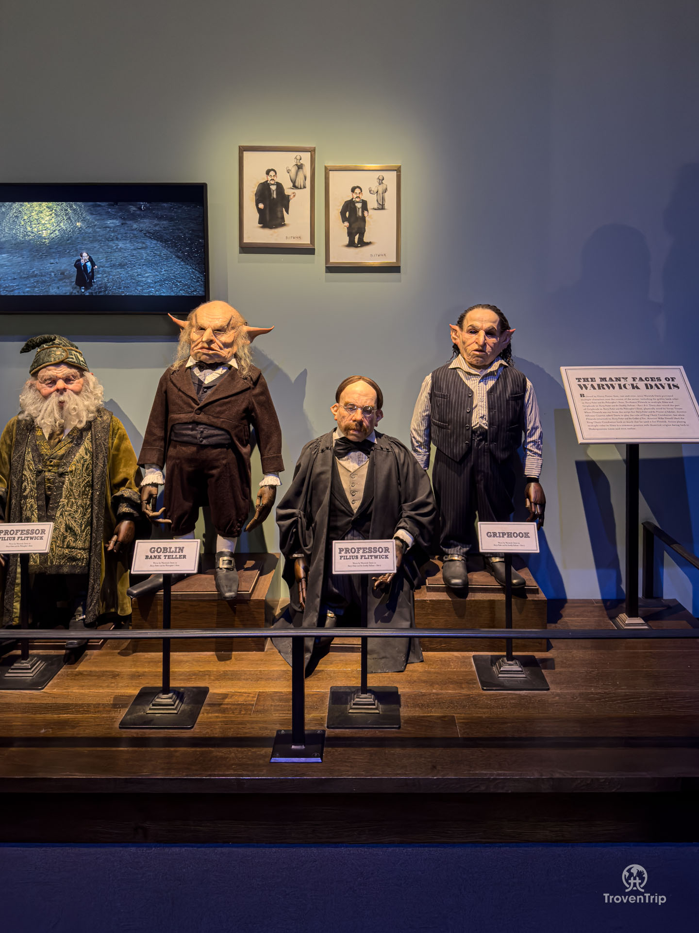And no costume and visual effects area would be complete without the Goblins from Harry Potter! A whole area is dedicated to them, with the actual costumes which the actor Warwick Davis wore, the many different masks used, and videos showing the painstaking attention to detail and the make-up efforts required to create the Gringots Goblins onscreen.