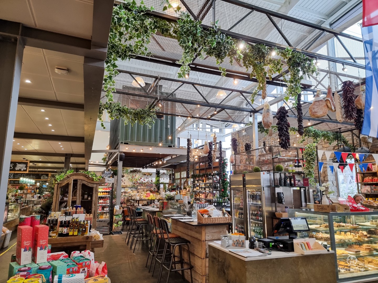 The food hall where we have breakfast is a really cool place… a farm shop come café selling anything and everything food and drink-wise, with a special focus on locally sourced produce (the local cheese is a particular speciality!)… and Sneha being a gin lover is amazed by the huge variety of gins… but it’s just 10am… so maybe something to pick up on our way back home.