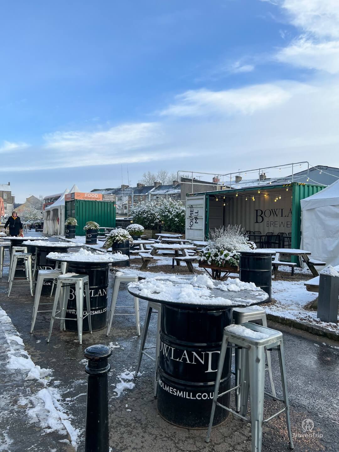 There is lots of outside space too (although not much is in use on a snowy day like today!), with an old red London bus serving as an outdoor bar and another tent serving pizza in the warmer months.