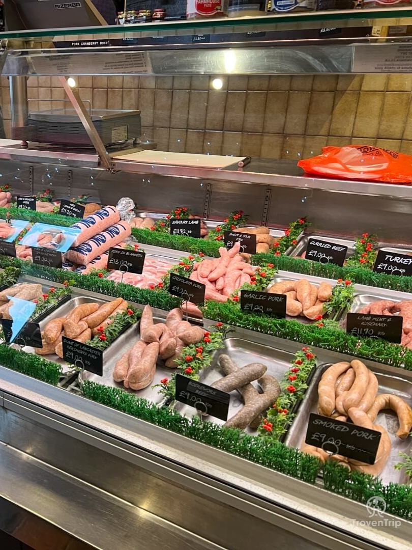 We make our way back down from the castle to the market town below, and have a walk along the high-street, stopping to get some local sausages from Cowmans Famous Sausage Shop. We go for an eclectic mix of venison, wild boar, Lancashire pork, and some called Rudolph’s Revenge (pork and chilli apparently!).