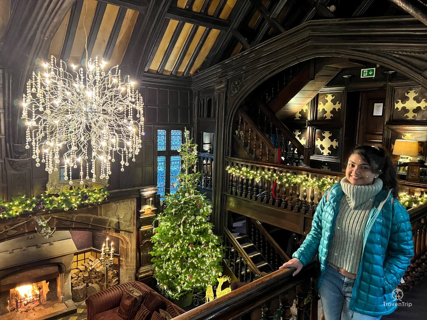 As we step into the main lobby Sneha says it looks like the Gryffindor common room (we are sure only Harry Potter fans will get this bit!), and the Christmas decorations and snow-covered grounds outside only add to the amazing place!