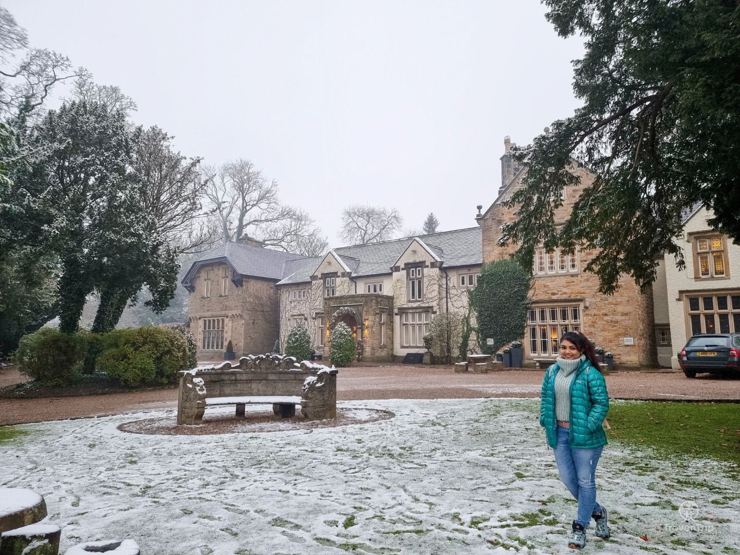We have picked an amazing day to drive down to Ribble Valley as the roads are snowclad and it gives the feeling of ‘Winter is Coming’ but in a very pleasant way! Paul is scared that his car may not handle the snow and icy roads well so is being extra careful… but Sneha is so thrilled to see the first snow of the winter that she’s too busy taking pics of the road to notice. Paul asks Sneha… “Are you even able to capture a single good one in a moving car?” Hmm I guess I have … what do you think guys… are they any good?!