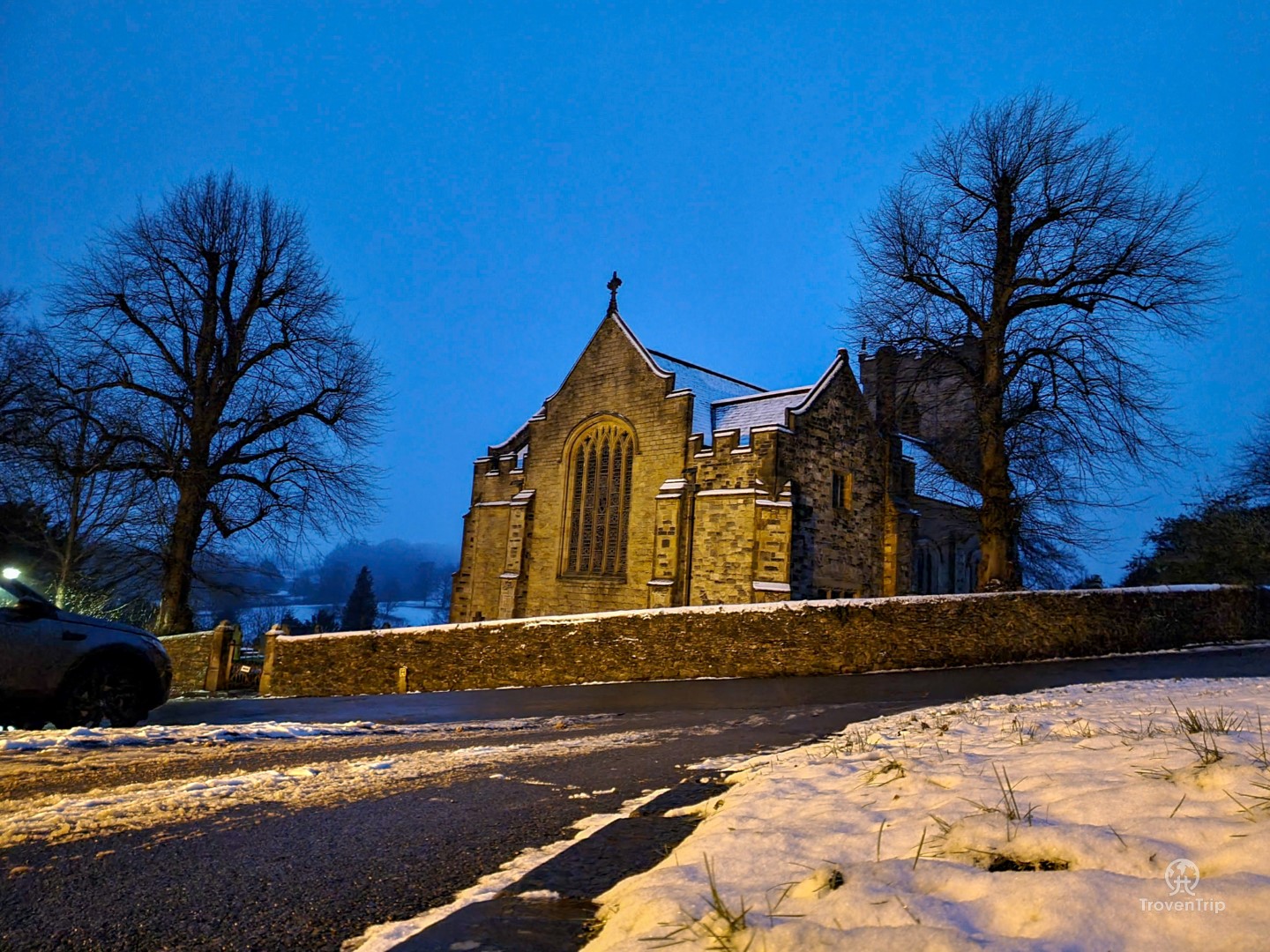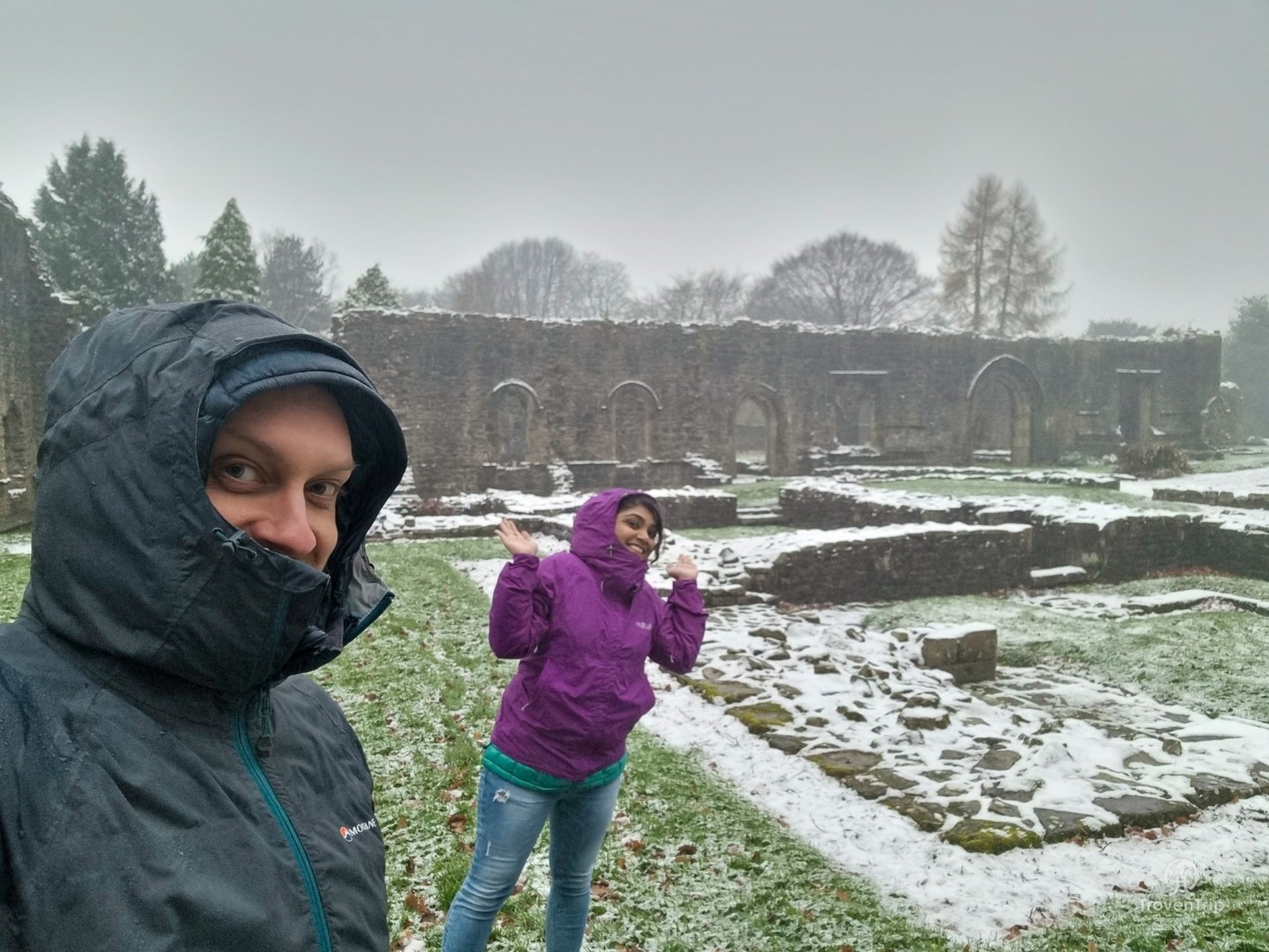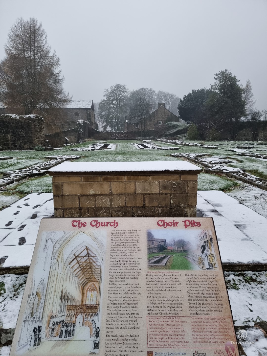As we leave Mitton Hall to head to Whalley Abbey 5 minutes down the road, it’s starting to get dark and the snow is starting to turn to rain, so by the time we reach it’s not quite as pleasant to wander around the grounds as it was in Clitheroe this morning!