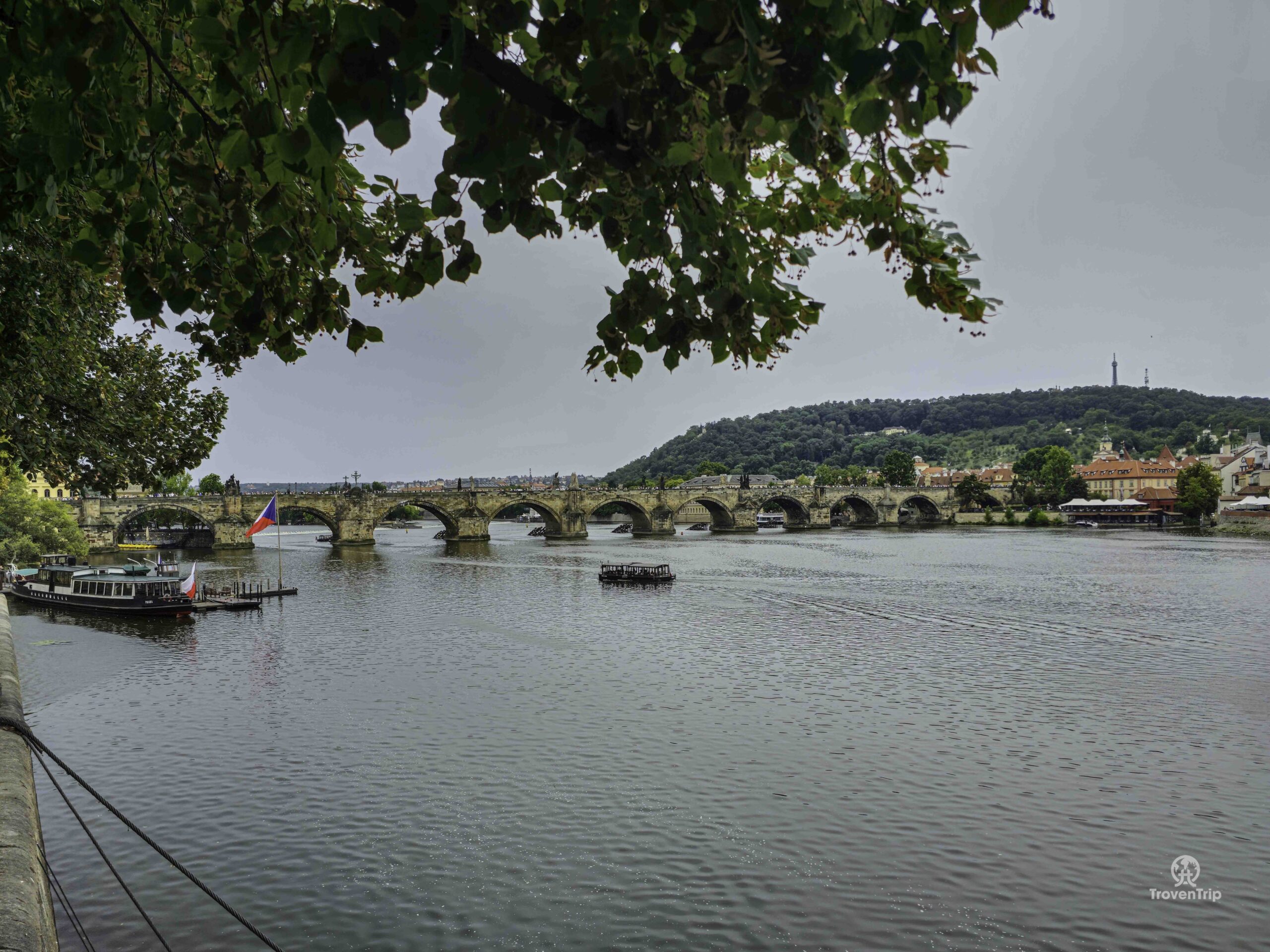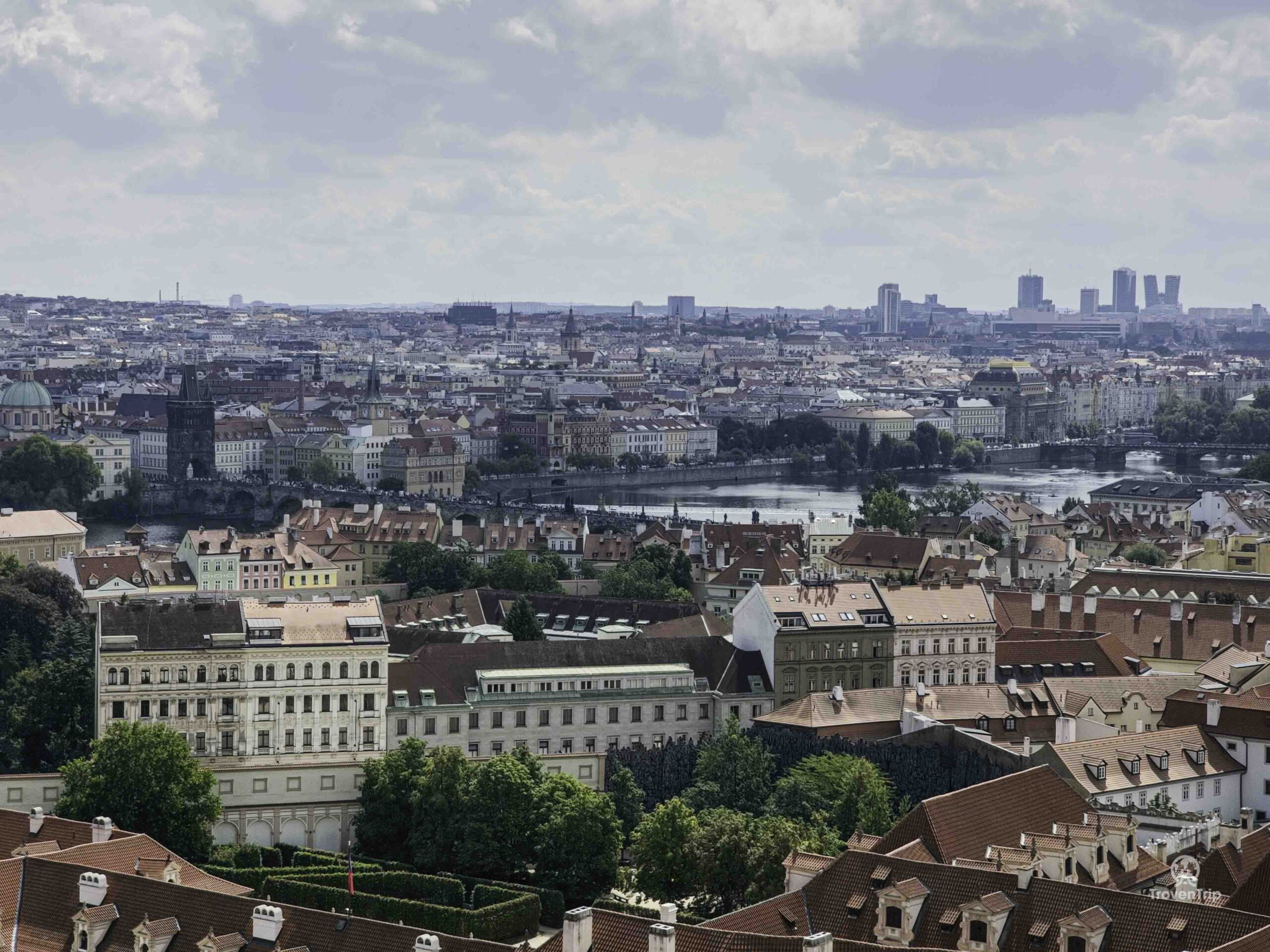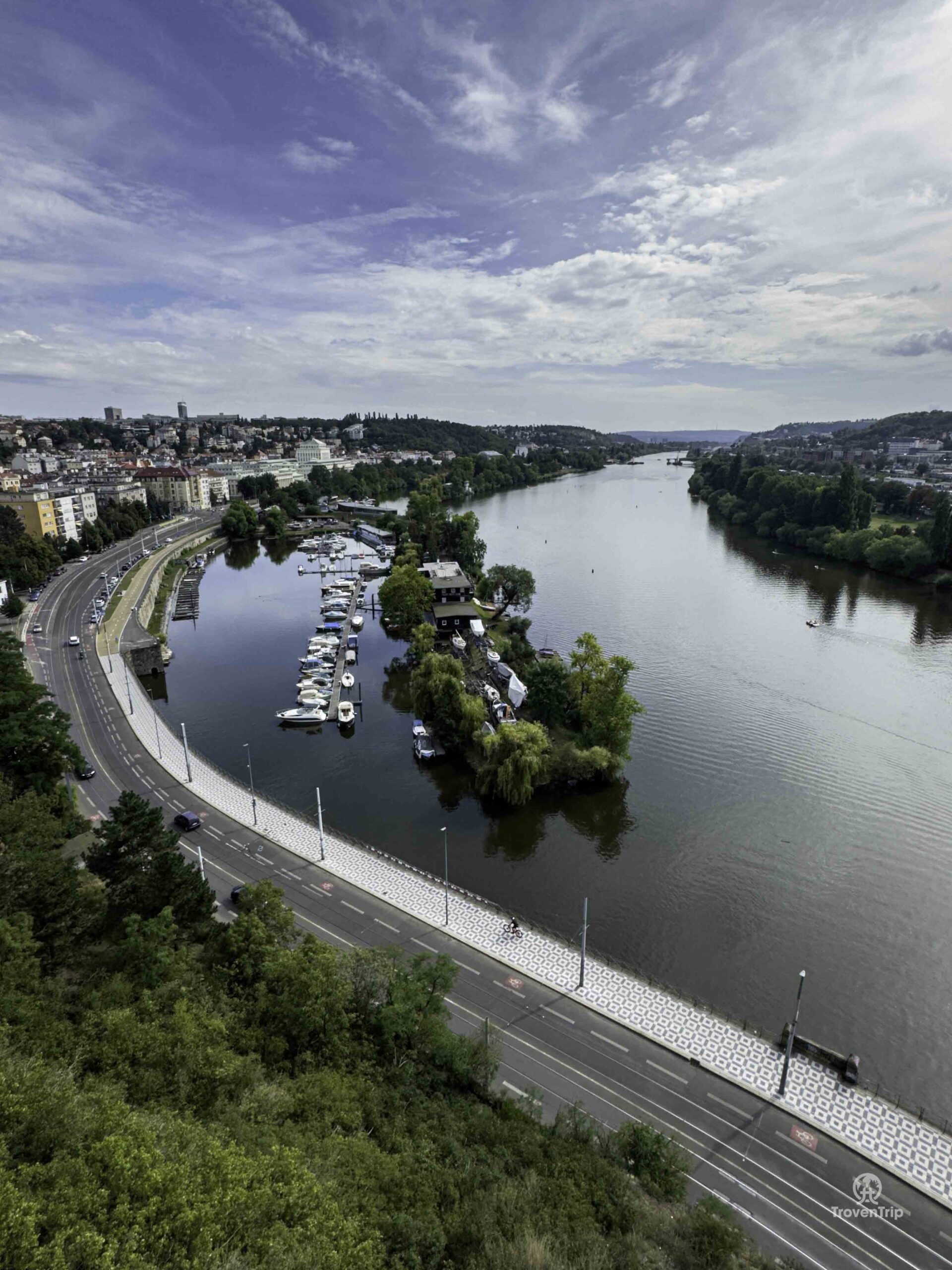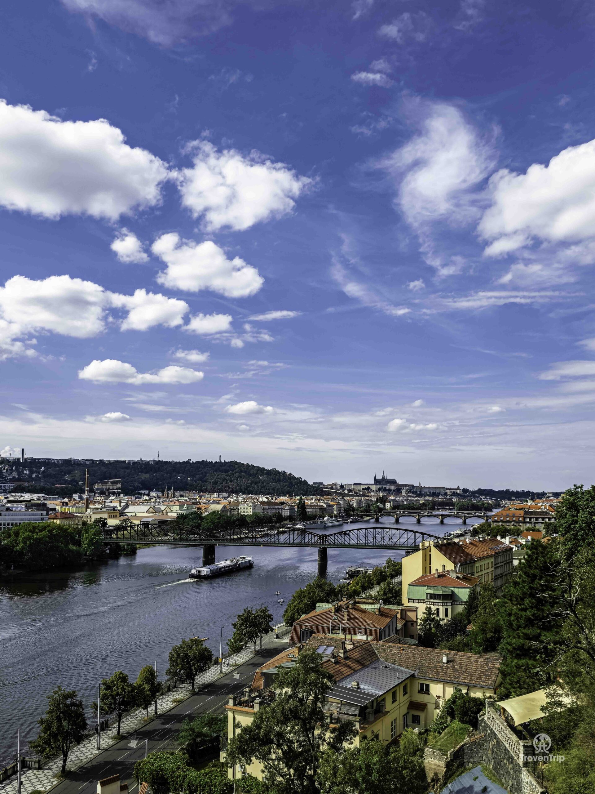 From the first viewpoint we can see south along the Vltava River and when we look down can see some of the old fortress walls. But from the second viewpoint we can see north up the river, and see the bridges crossing it and Prague Castle in the background.