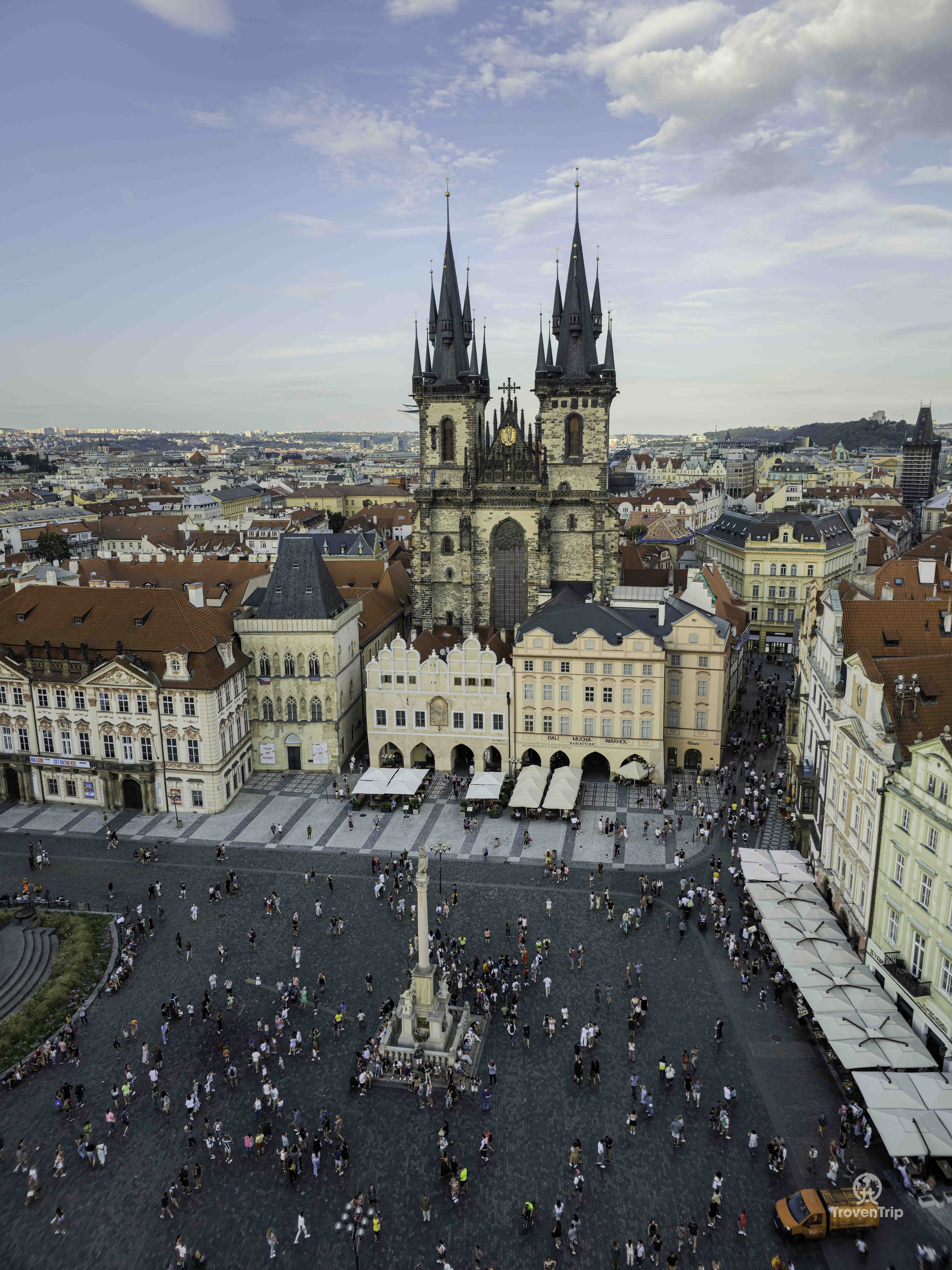 And the tour ends with a visit up the Old Town Hall Tower, giving us amazing views of the Church of Our Lady before Týn on the Old Town Square in one direction, and Prague Castle in the other. And with it getting towards sunset, the sky is looking beautiful, so we spend quite a lot of time up there just admiring the views!